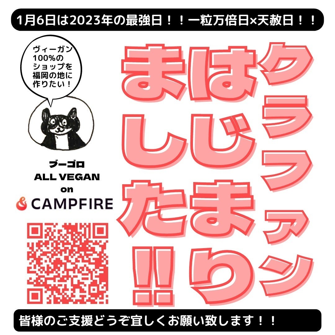 皆さまこんにちは!ブーゴロALL VEGANのクラファンは三日目を迎えました。すでに福岡県内外からの多数のご支援をいただいており、本当に本当に感謝しております!!ありがとうございます!!クラファンは最初の一週間が最も重要で、ここで勢いがでることによって、目標達成が現実的になって行くと言われています。大変お手数ではありますが、ぜひ周りのお友達に拡散していただき、1人でも多くの方にこのクラファンのことを知って頂けましたらありがたいです。引き続き、どうぞよろしくお願い致します!遠方の方へは通販でのリターンが可能です。ブーゴロALL VEGAN 満尾啓子
