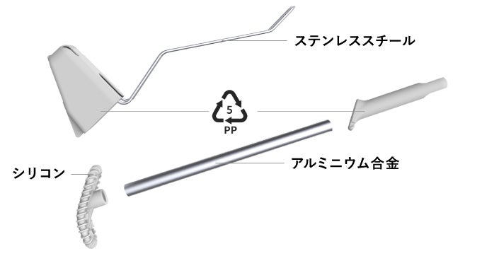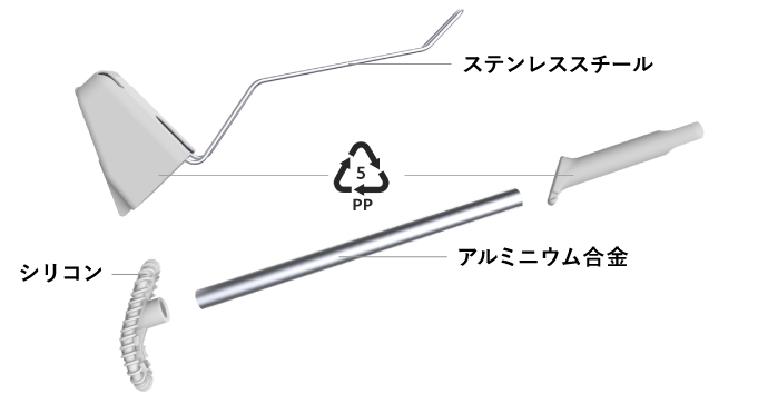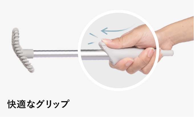 ステンレスハンドルの折れ曲がる箇所に、ブラシのグリップをカチッとはめることができます。