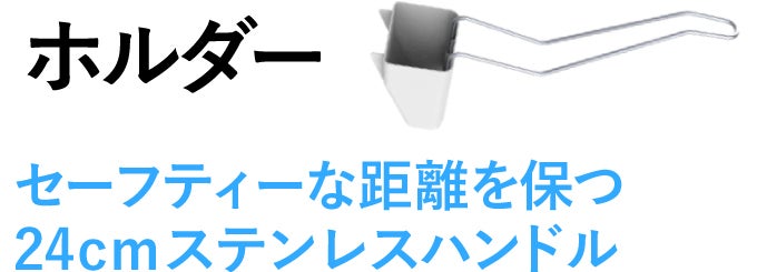 HUROYAMA Brushの専用ホルダーは使いやすいハンドルがついており24cmのセーフティな距離を保ったまま、ホルダーに直接触れずとも余分な水を排出することができます。だから手にかかる心配もありません。