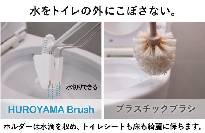 HUROYAMA Brushは従来のトイレブラシもより長く、少なくとも数年レベル使い続けられるよう製造されています。丈夫なだけでなく、使用後も清潔さをキープ。衛生面を損なうことなく、不必要な使い捨てやダメになったブラシの廃棄を減らすこともできるから、お財布にも非常に優しいと、良いこと尽くめです。