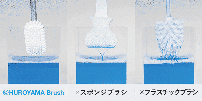 HUROYAMA Brushなら、トイレボウルの表面と釉薬(うわぐすり)を傷つけることなくトイレはピッカピカ。菌繁殖の温床を生み出しません。
