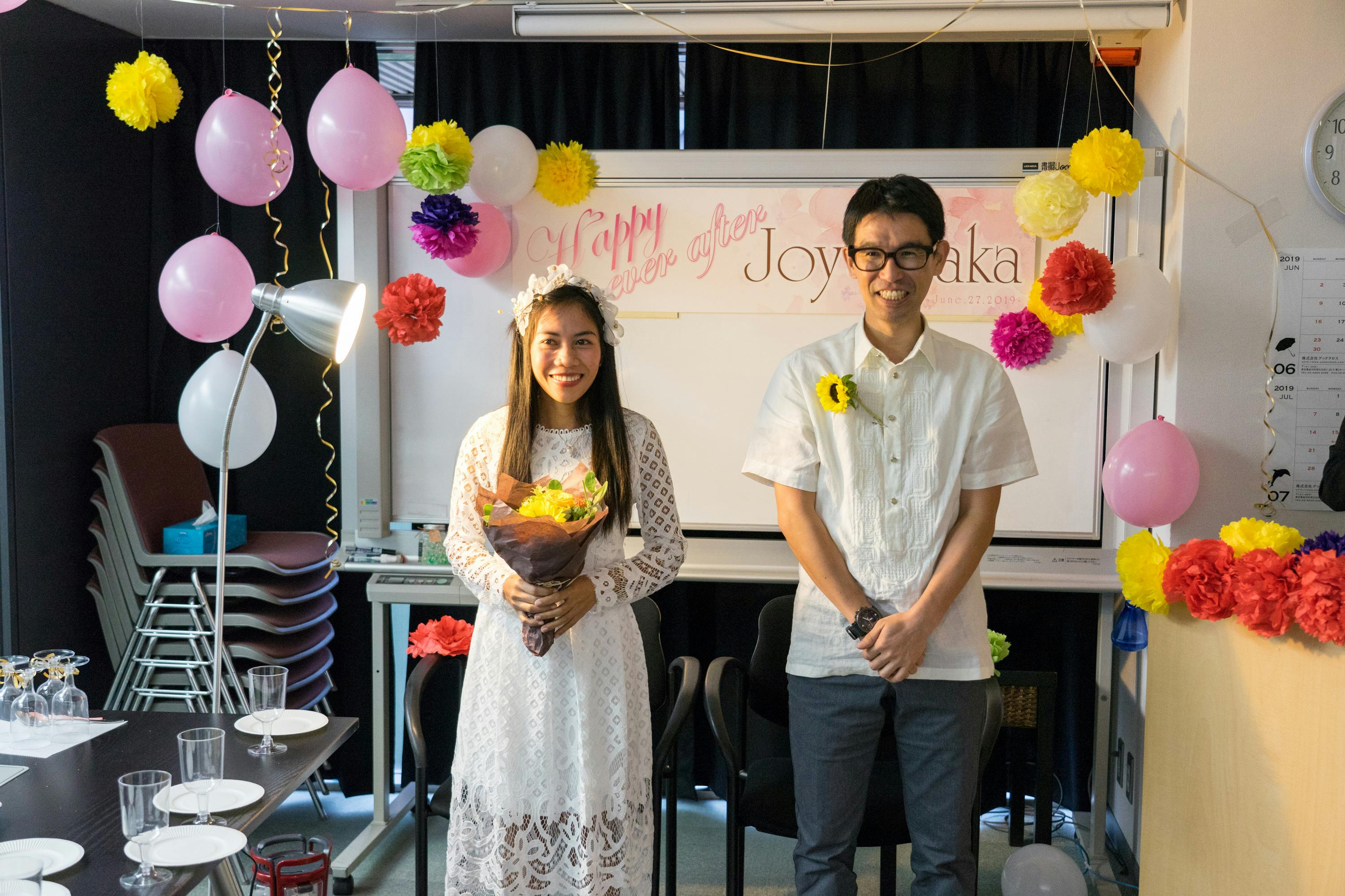 2019年6月日本に帰国した際に五反田本社の会議室、従業員立会いのもとミンダナオ出身のジョイさんと結婚式を挙げました。