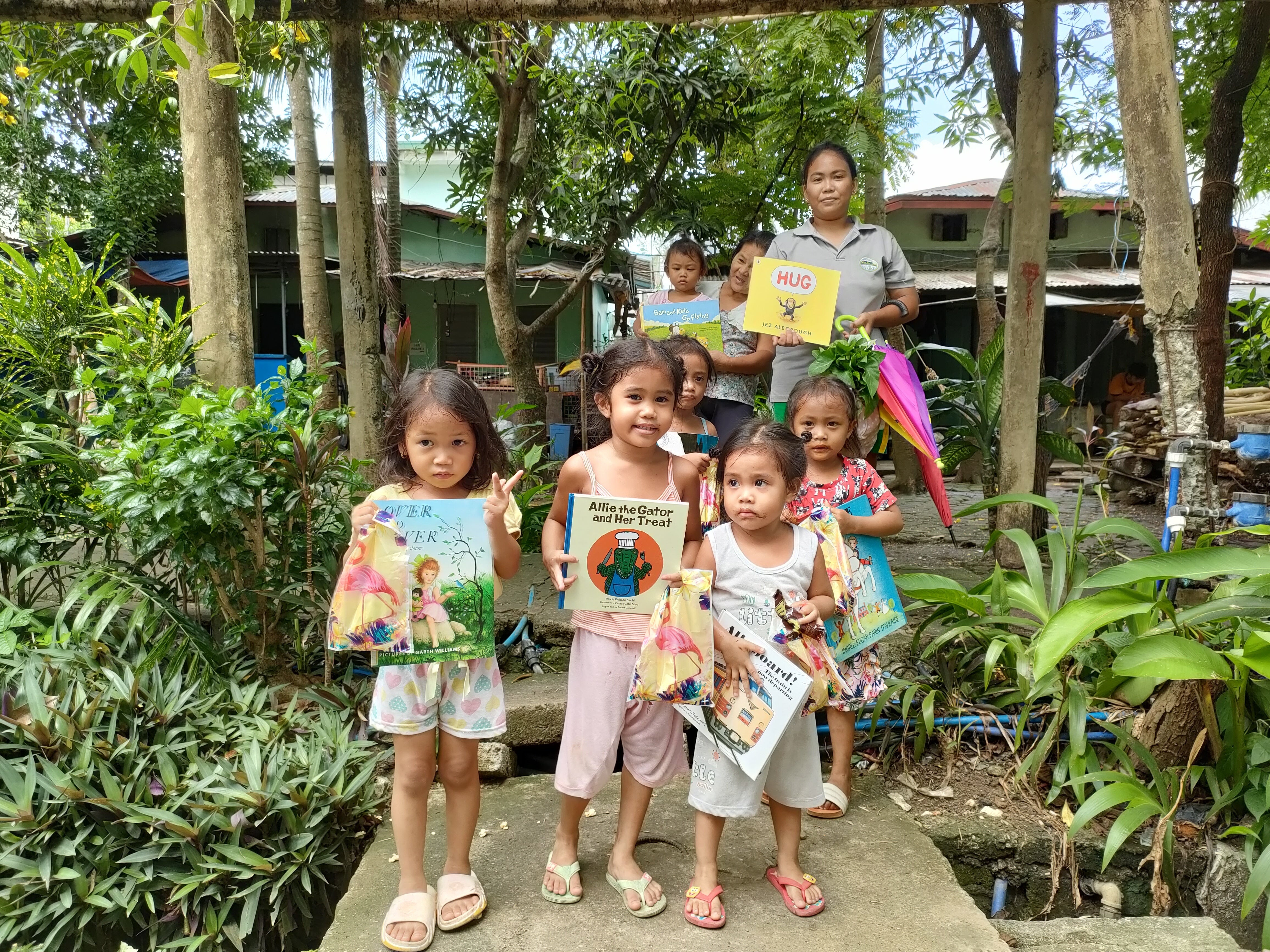 「チョコだよ~、バスケのボールくれるらしいよ!古着もあるって!!」となれば子供たちも(大人も!)飛んでやってくるかもしれませんが、絵本と聞いて目を輝かせて「やったぁ~!」