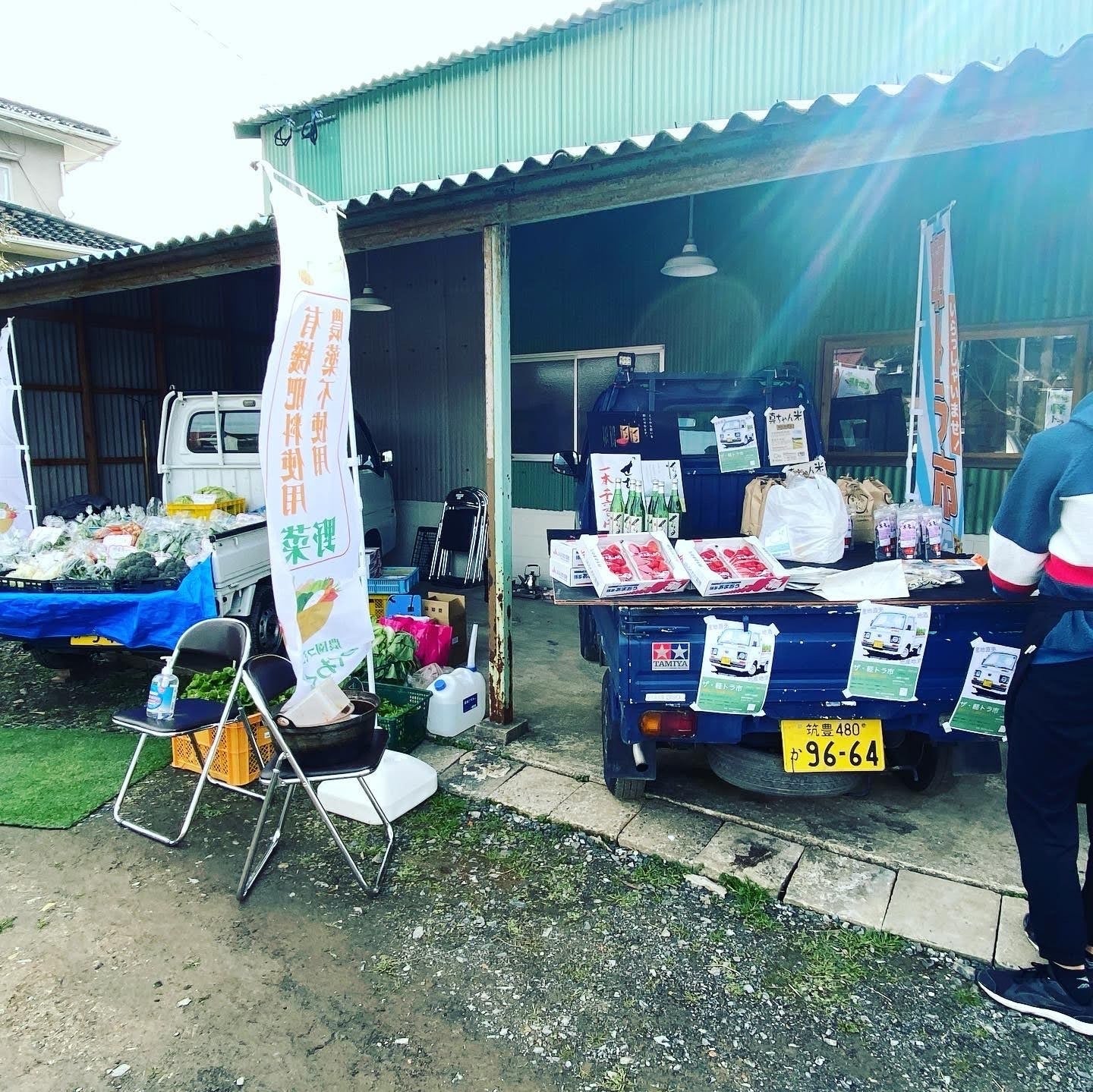 (軽トラ市の風景、市内の野菜レストラン「コトツキ、」みま様駐車場にて)