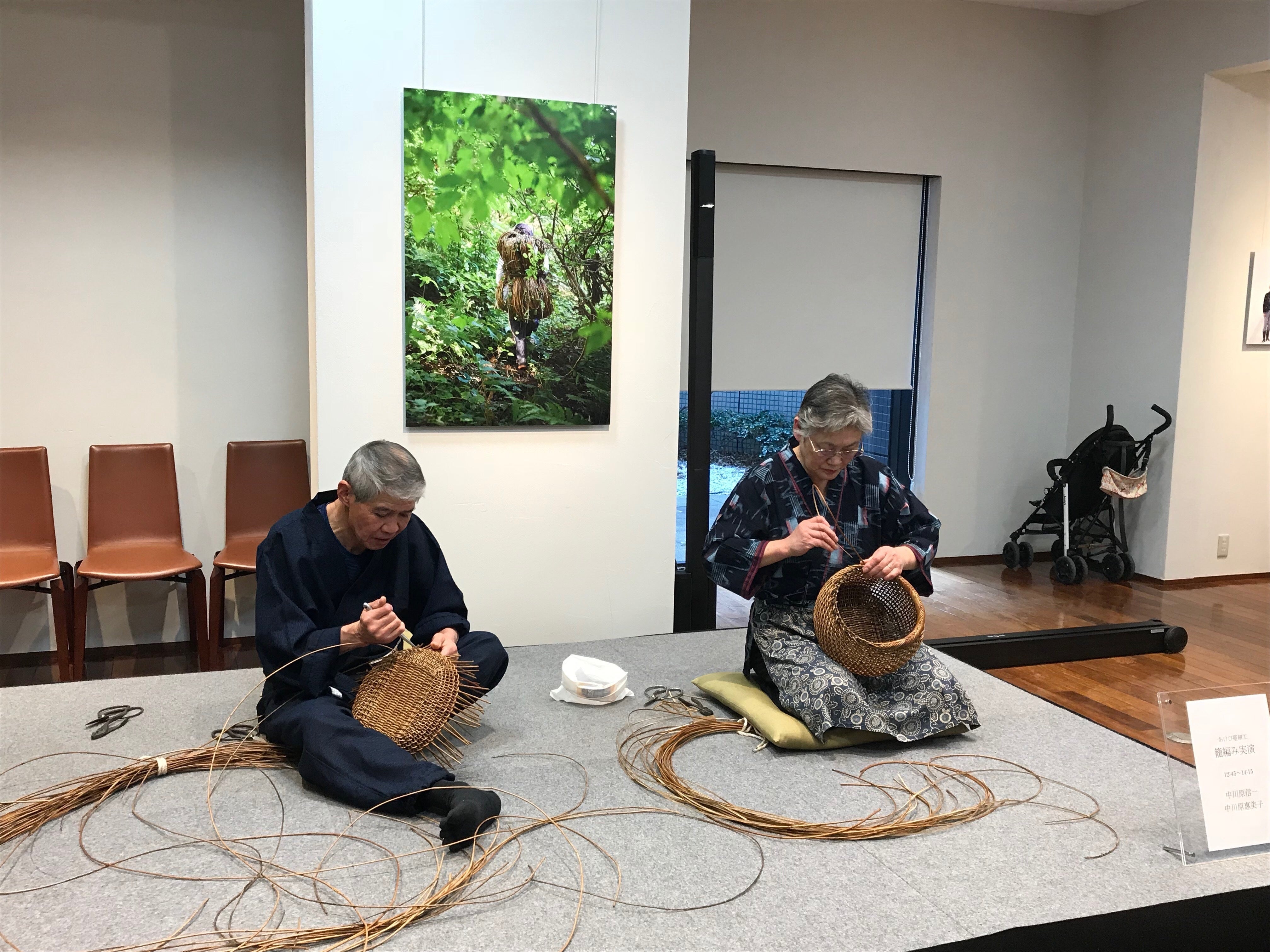 中川原信一、恵美子夫妻によるあけび蔓細工の実演