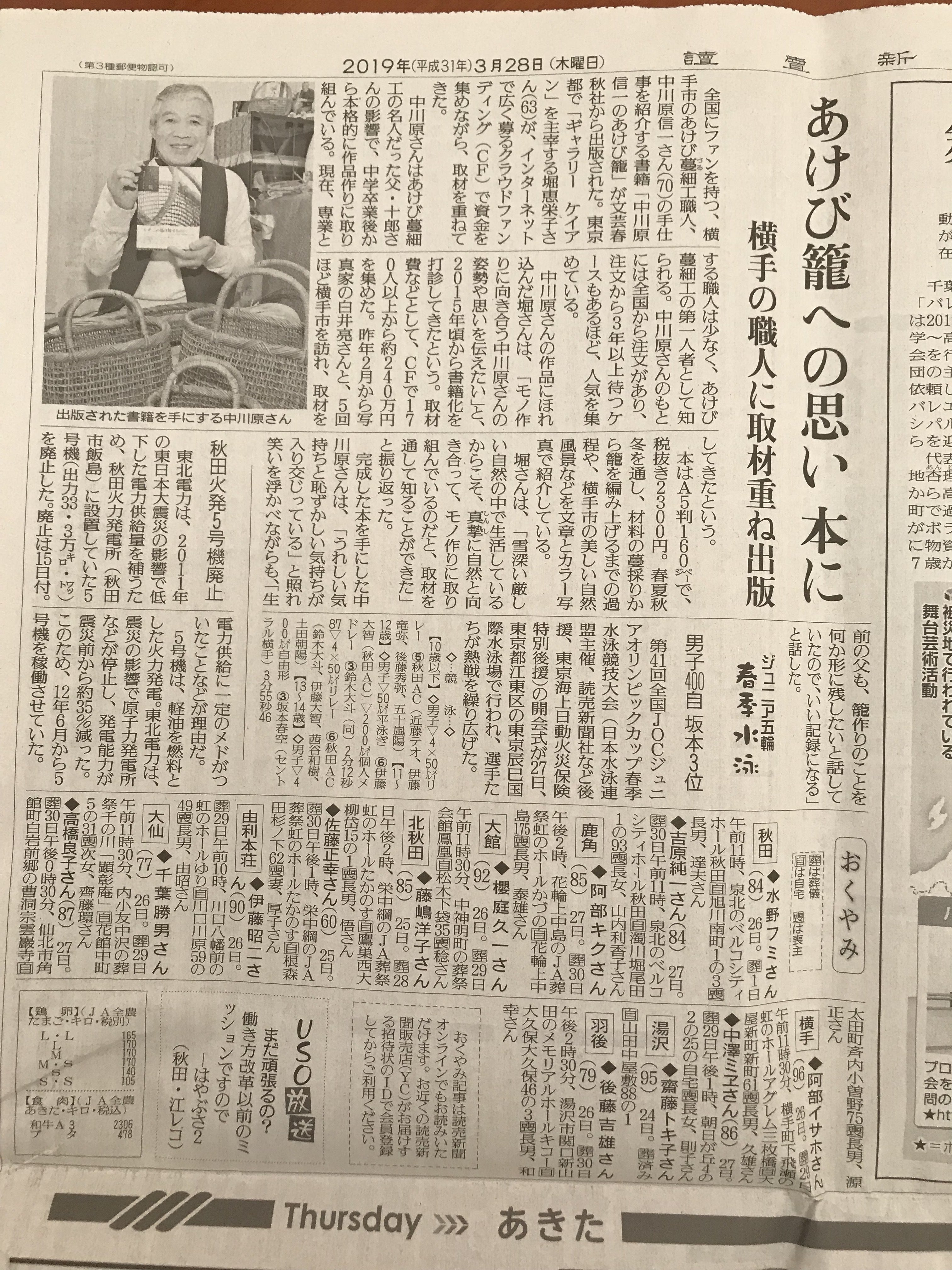 『中川原信一のあけび籠」出版記念、関連企画展のご案内民藝を育む四季『中川原信一のあけび籠』白井 亮写真展2019年5/21(火)−6/8(土) 12:00-19:00 日・月お休み於・Books and Modern (港区赤坂9ー5ー26 パレ乃木坂201) 地下鉄千代田線乃木坂駅2番出口徒歩1分、大江戸線六本木駅より徒歩5分 実はこの本が実現するきっかけを作ってくれたのが、このブックスアンドモダンオーナーの若井さん。小さいながら、いつも私が読みたいと思う本が必ず並んでいる書店であり、また内外の写真家の作品展を軸に、書籍との様々な関連イベントを開催されています。 昨年も「カンボジアの手仕事」をキーワードにご一緒させていただきました。 今回は、民藝という切り口で関連書籍、関連商品の紹介、販売もあります。6月1日(土)17:00からは白井 亮さんと私(堀)との対談も予定しております。参加費1500円(ドリンク付き)参加予約はhttps://shop.booksandmodern.co 3月の文春ギャラリーとはまた違った展示になると思いますので3月にいらした方も、また見損なった方もどうぞお誘い合わせの上ご来場くださいませ。*さらに以下の日程で関連の企画展を開催予定です。東京・銀座 森岡書店 2019年7/16−22