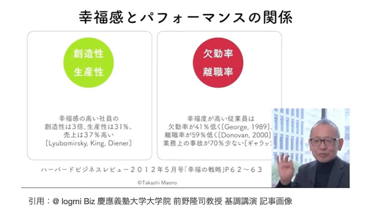 幸福感とパフォーマンスの関係性について発表されています。
