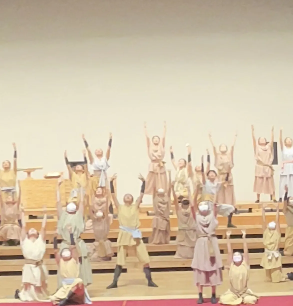 20周年公演【卑弥呼】本番までの練習の流れ⇒月曜日と金曜日の通常練習のほかにそれぞれの役柄によっては特別練習が火曜日水曜日木曜日に入ります。土曜日日曜日は全体練習をします。