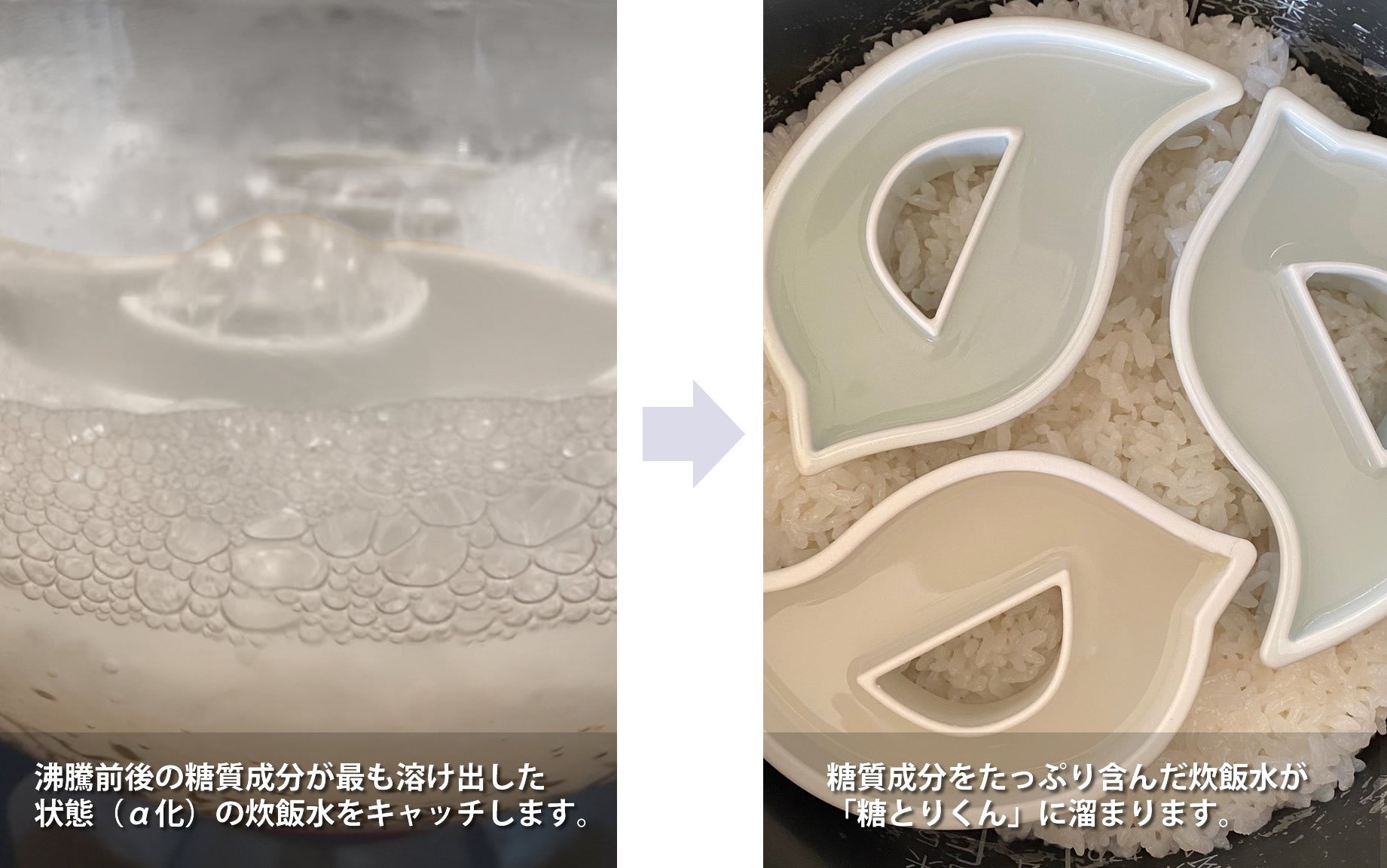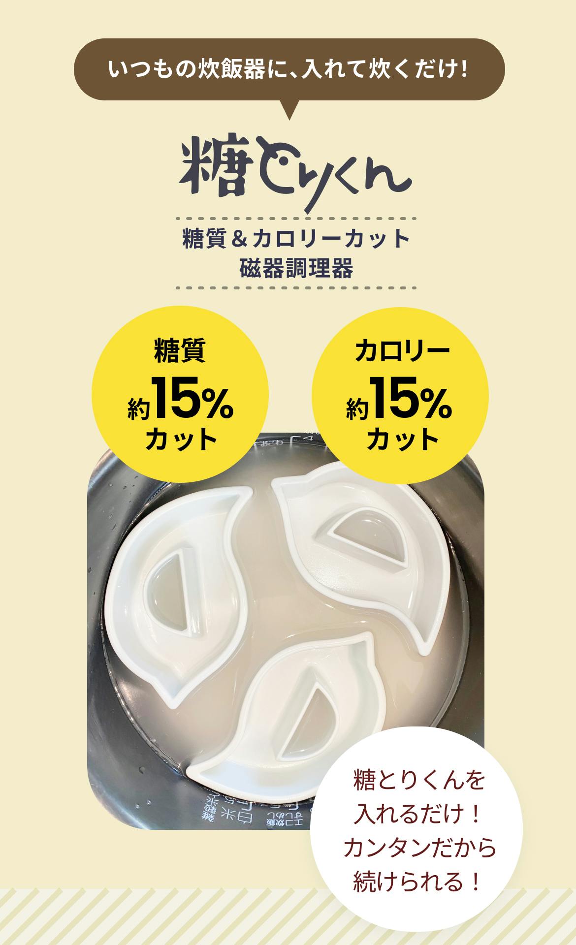 ひと言でいえば、「炊飯器に入れてごはんを炊くだけで、糖質&カロリーをカットしてくれる優れモノ!」という事ができます。