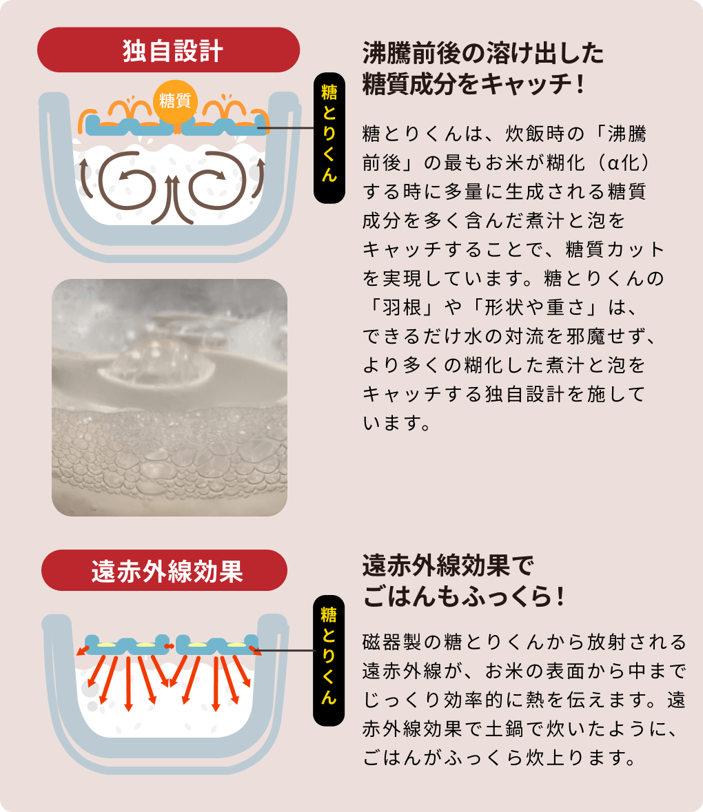 ~糊化した煮汁をキャッチする独自設計です!