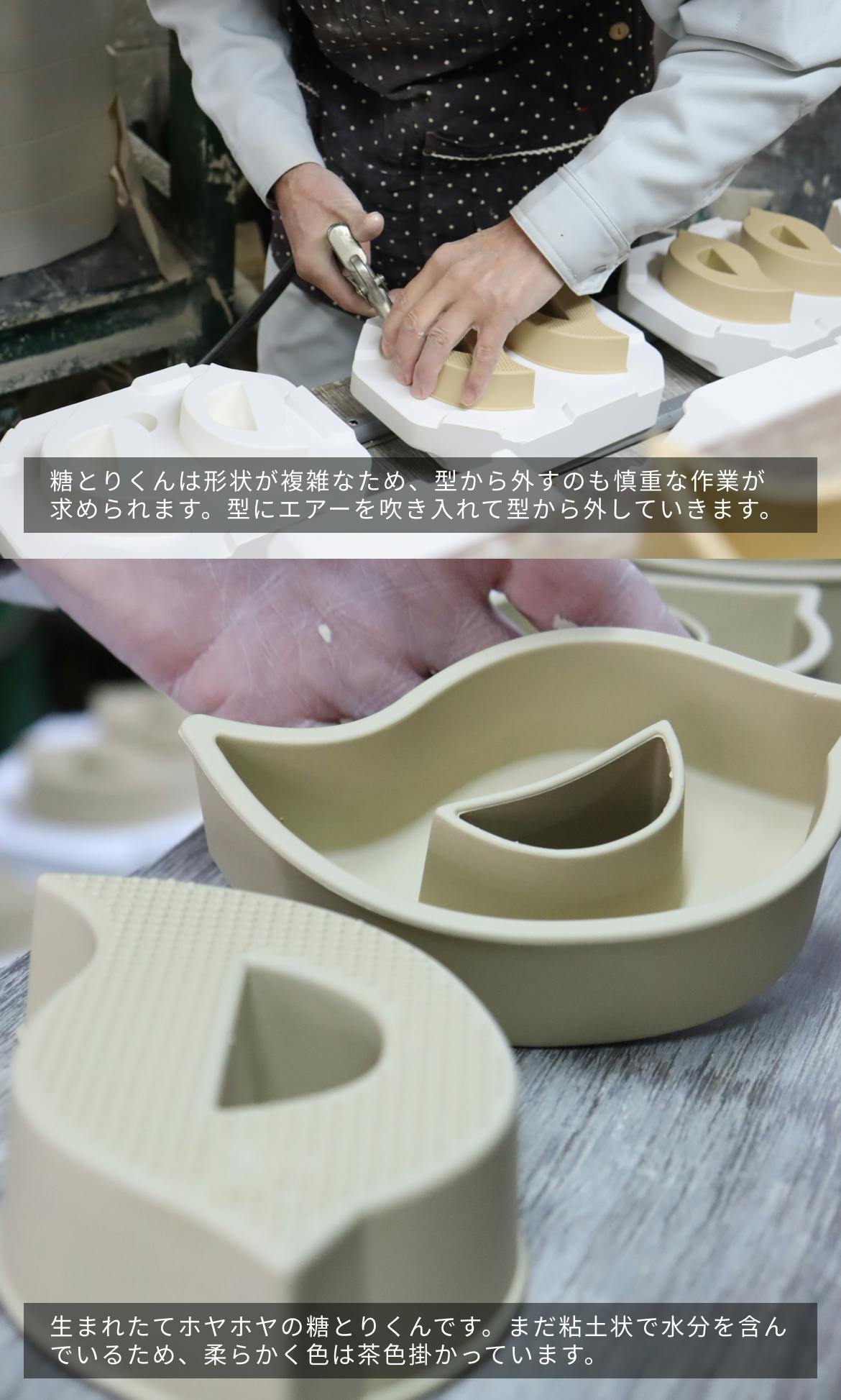 ヤマト陶磁器さんにしても、このような磁器製品の製造は初めてだったようで、「…とりあえず、やってみましょうか…」と、「?」と「不安」が満載の「糖とりくんプロジェクト」のスタートとなりました。