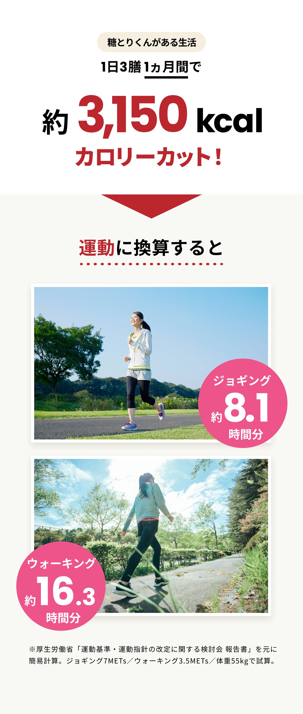 1年間で『角砂糖2,160個分』『ウォーキングなら東京⇔大阪を約1往復分』の糖質とカロリーカットのお手伝いをすることができます。