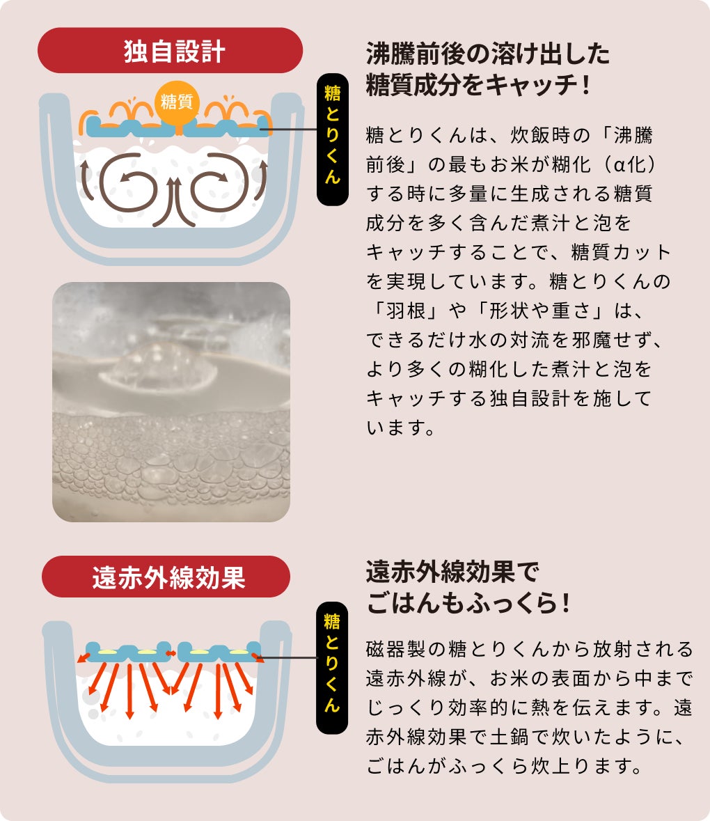 だから私たち「糖サポ」は、“糖質制限ダイエットのラスボス”でもある「毎日のごはん」にフォーカスして「毎日のごはん」へのアプローチを最重視して独自の商品開発を進めています。今回はその取り組みの一環として「糖質カット磁器調理器 糖とりくん」を、ご紹介させて頂きたいと思います。