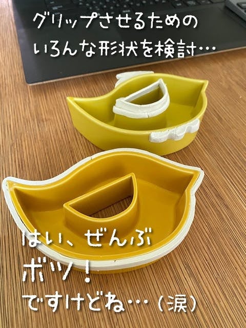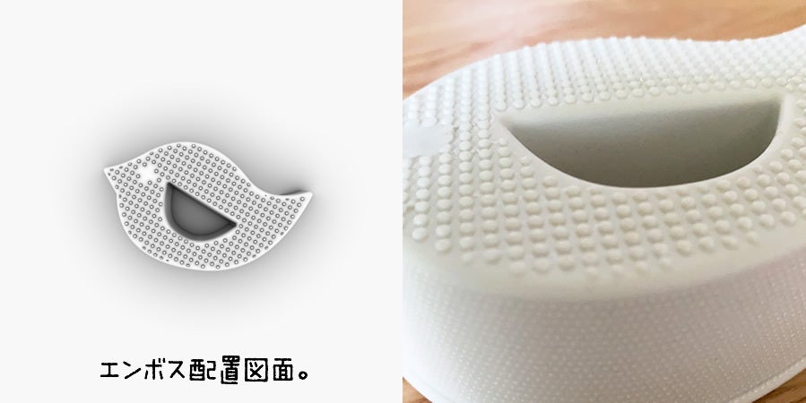 …ん~確かに。そこでさまざまな解決方法を検討の結果、底面と側面に「エンボス加工(デコボコ加工)」を施す方向で、再度「第4号試作器」の制作に着手!