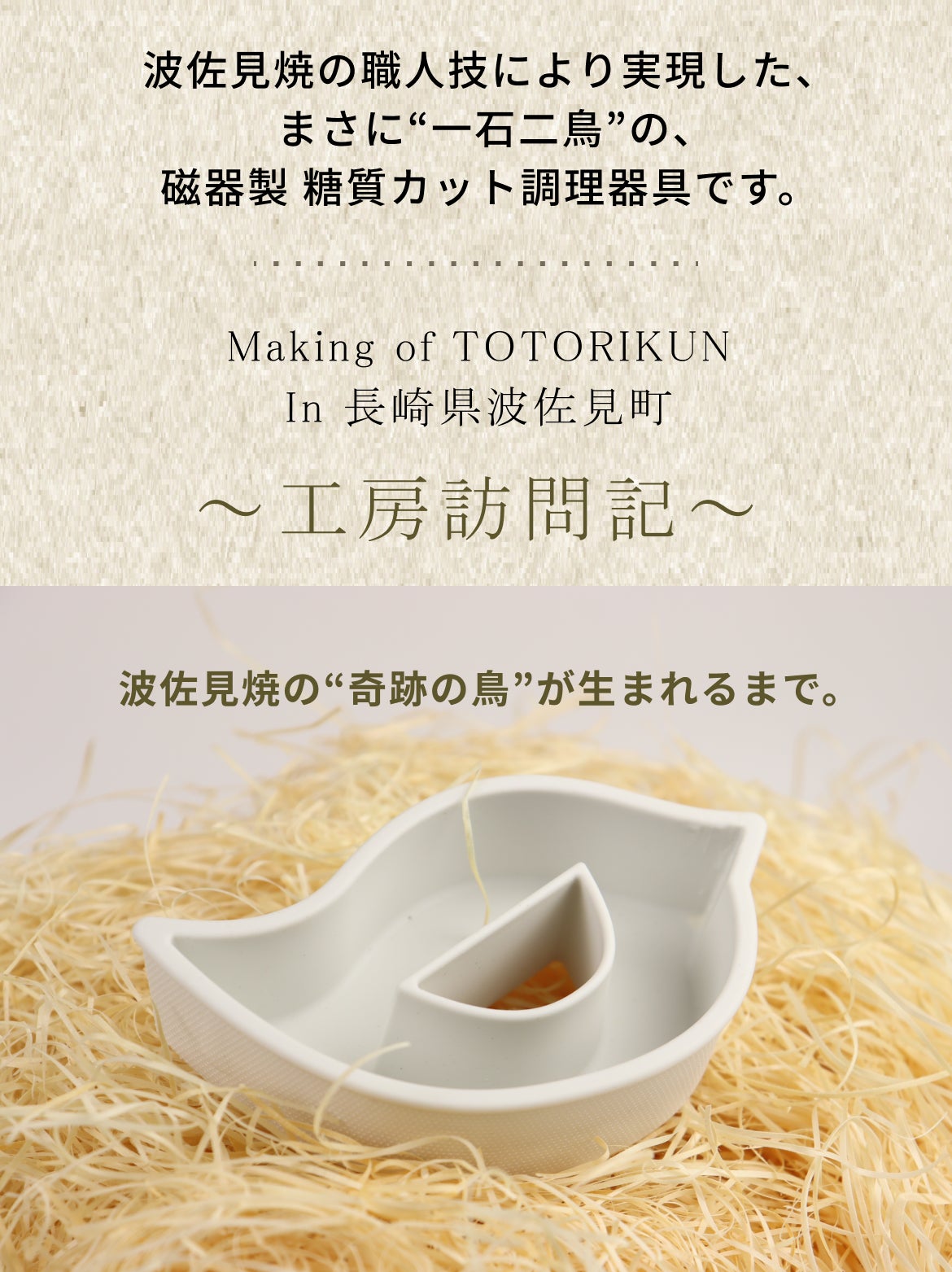 今回はその取り組みの一環として、「糖質カット磁器調理器 糖とりくん」の開発を、佐賀県有田の陶磁器屋さんと波佐見焼の窯元さんのご協力を頂きながら進めています。(毎日)無理なく、(お財布)に負担なく、毎日の生活に糖質制限を取り入れて頂くための、私たちのプロジェクトに是非お力添え頂ければと思います!