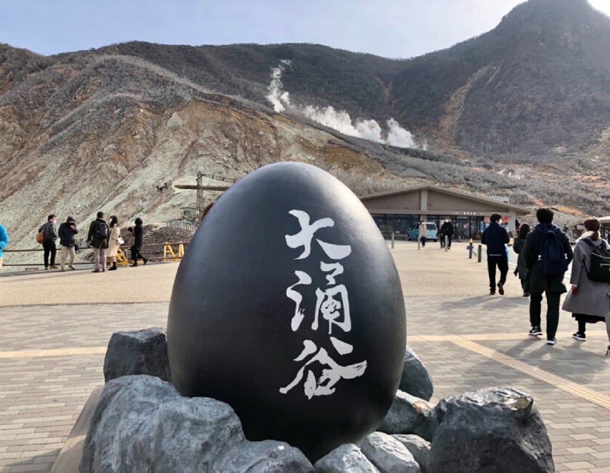 箱根で特におすすめなのは、温泉地である大涌谷の名物、黒たまご。生卵を温泉池で茹でることにより、化学反応で黒くなります。
