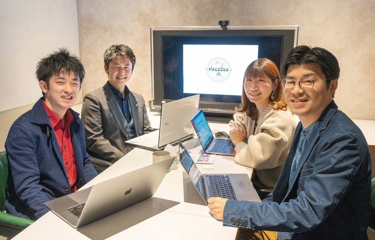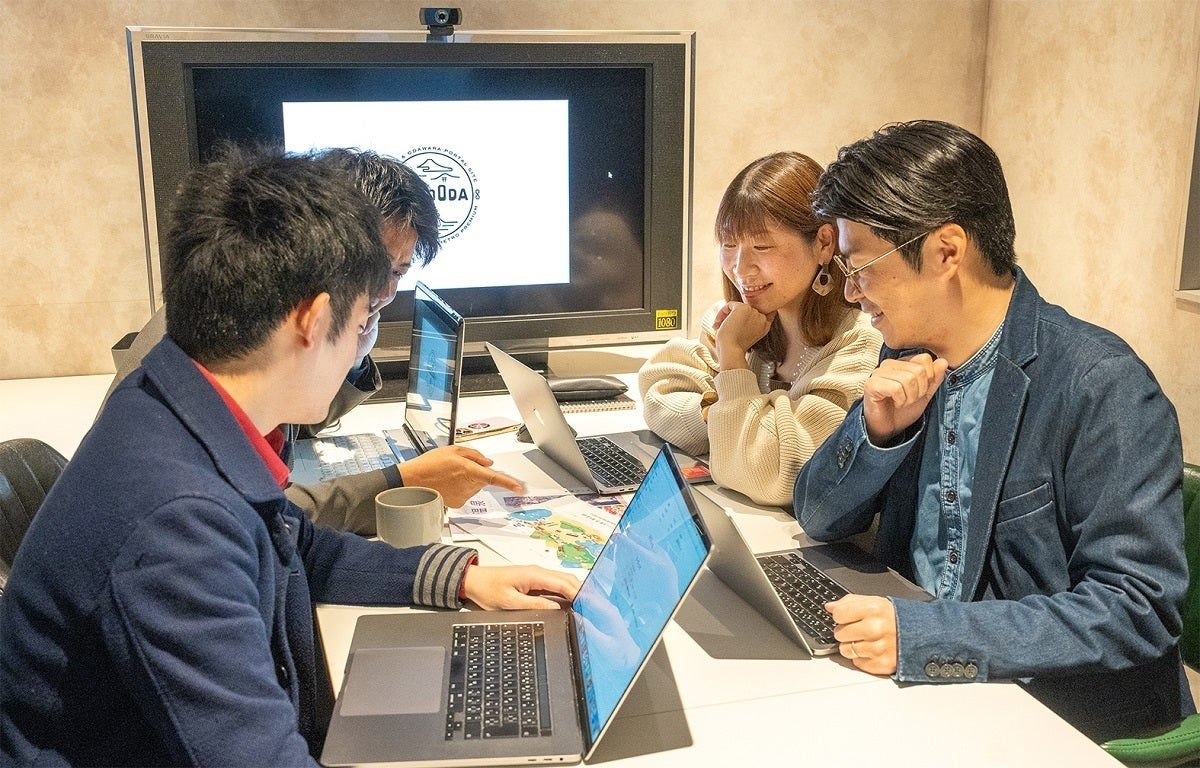 チームHACOODA(写真奥左が浦本) 初めは右も左もわからないままスタートしましたが、箱根・小田原の観光業のお客様が本当にあたたかく、そして誇りを持ってお仕事をされていることに感銘を受けたのを覚えています。