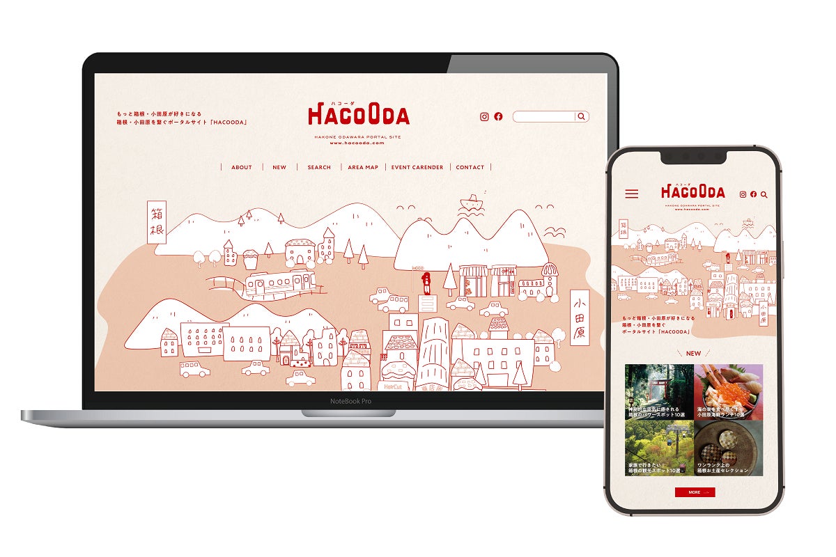 サイト名は箱根の「はこ」と小田原の「おだ」を繋ぎ『HACOODA』(ハコーダ)。箱根と小田原、隣接する両エリアの情報を包括的に扱うサイトという意味で名付けました。