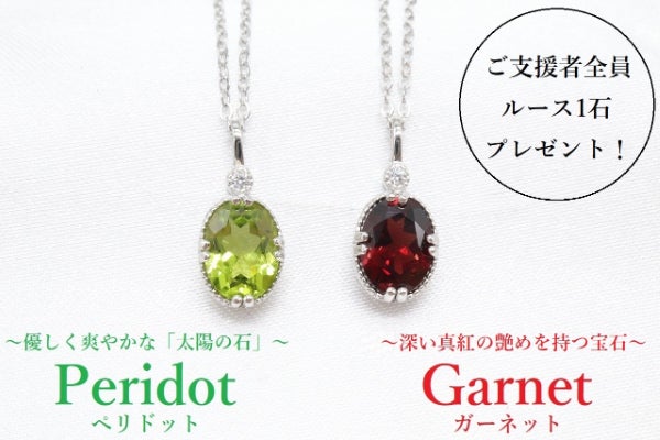 【ご支援者様全員に天然ガーネット1ct相当 or 天然ペリドット1ct相当のルースをプレゼント!!】