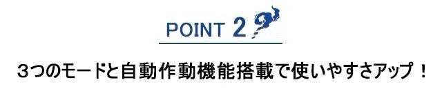 今回、機能として3つのモードを搭載することで、より多くの方々にお使い頂きやすい製品となりました。また、待機モードと自動作動機能が搭載されたことによって利便性が更に高まり、皆様の生活に自然に馴染みやすい、というのも本製品の特徴となっております。