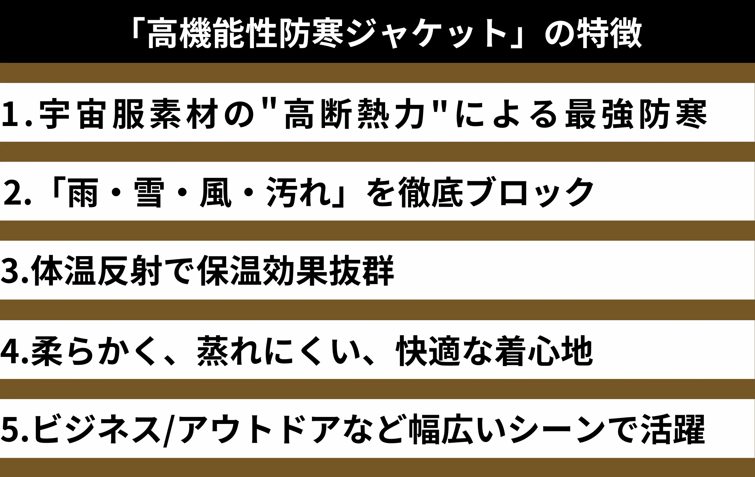 -196℃の断熱効果を有するNASA宇宙服素材をアパレルに応用し、「高機能性防寒ジャケット」が超進化!