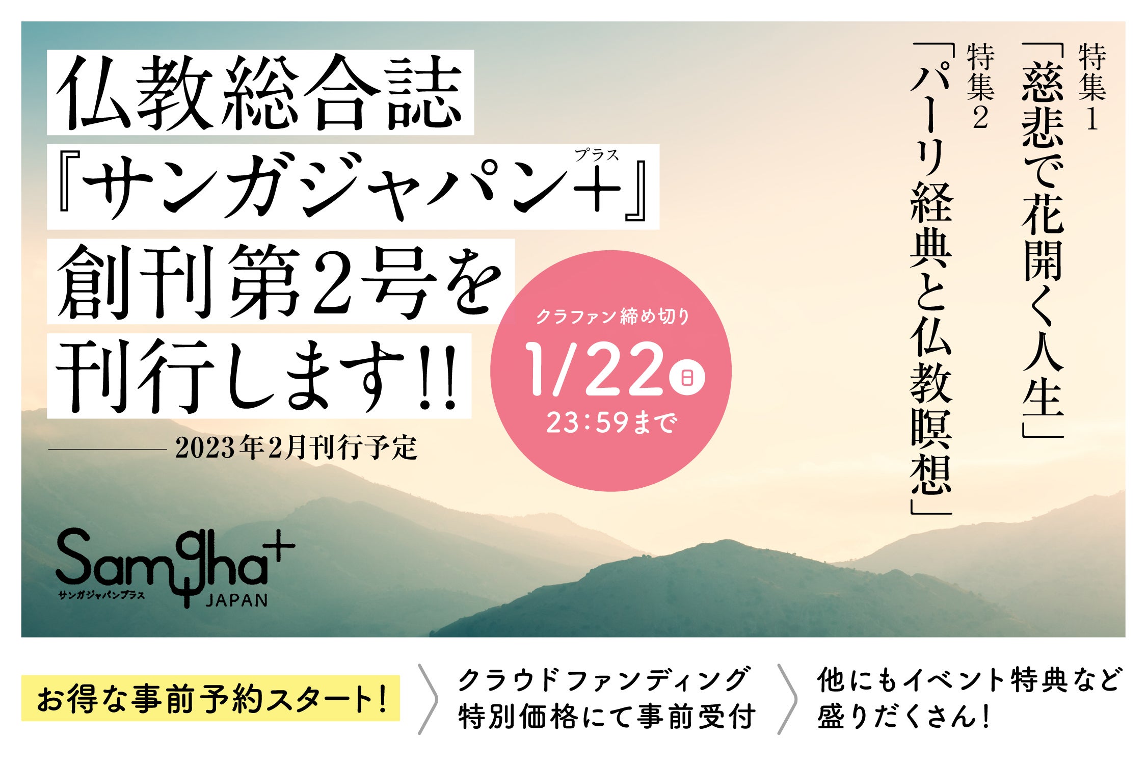 そして、「同時代✕仏教」という編集方針を指針に、現実の課題を仏教の智慧で掘り下げていく『サンガジャパン+』は、創刊号の特集で掲げた「なぜ今、仏教なのか」という問いから、「だからこそ今、仏教なのだ」という境地に導くものと確信しています。それぞれの立ち位置から仏教の力をご教示いただく執筆者の知見は、私たちに智慧の灯をともし、私たちを鼓舞してくれます。