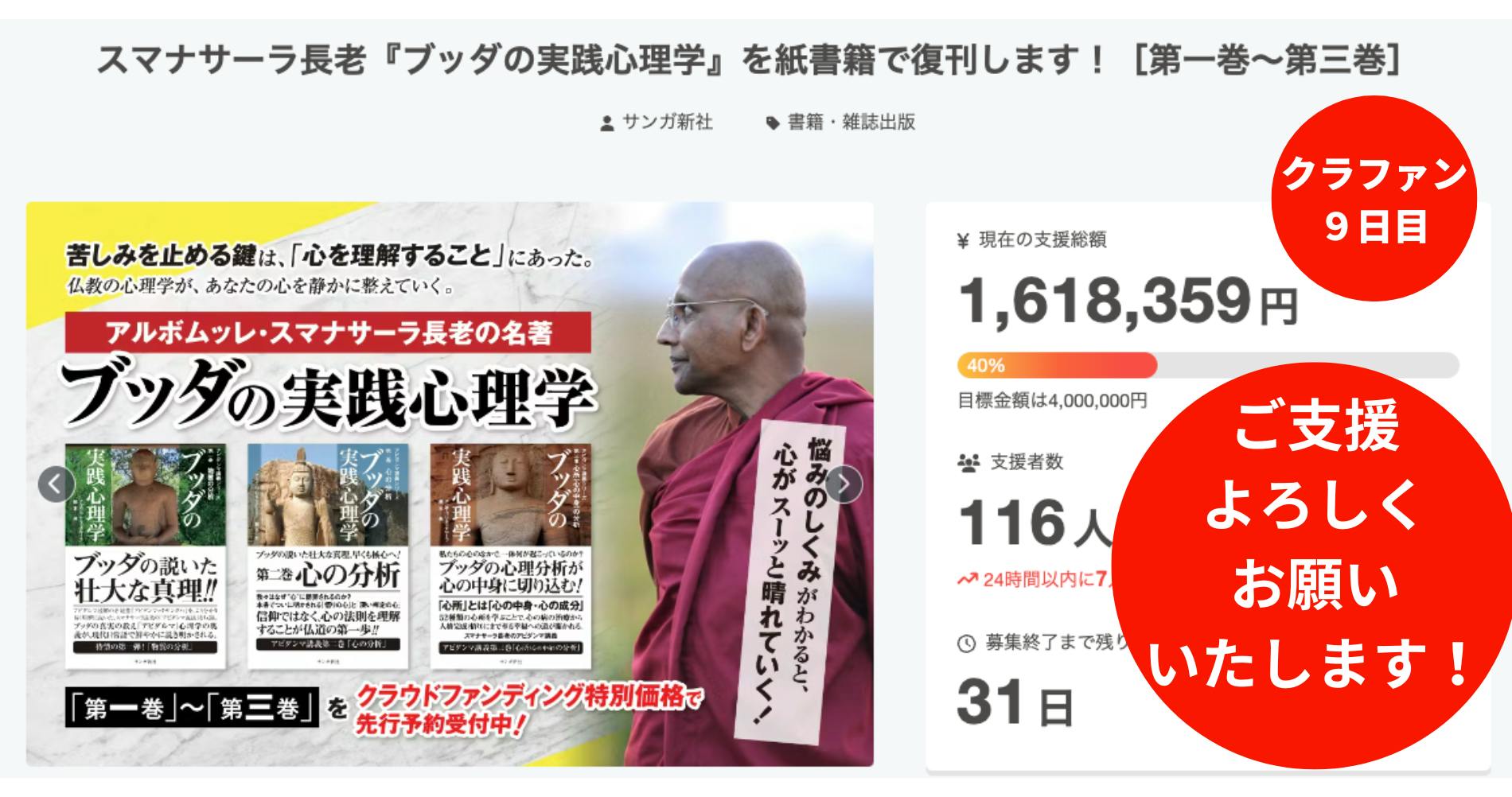 スマナサーラ長老の教えを「もう一度世に届けたい」という皆さまの思いが、力強くプロジェクトを押し上げてくださっています。心より御礼申し上げます。