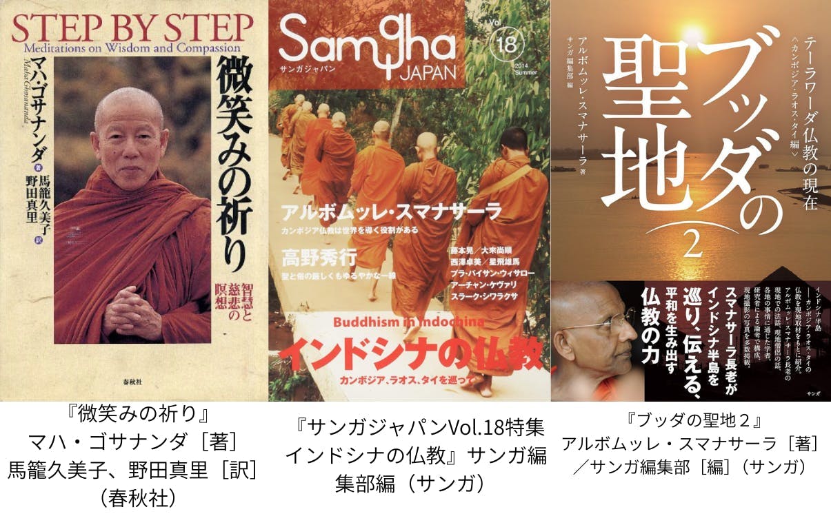 「エンゲージド・ブッディズム」という言葉を知ったのは昔、ティク・ナット・ハン師の翻訳本を出版しようとして、関連本を調べていた時だったと思う。2000年代後半だったろうか。言葉として意識しつつもそれを特集することはなかったのだが、カンボジアの高僧マハ・ゴサナンダ師のことを『微笑みの祈り』(春秋社、1997年)という本を通して知り深く感銘を受けたとき、ゴサナンダ長老もエンゲージド・ブッディズムとして語られることを知り、いつかきちんと取り組みたいと思うようになった。その後、2014年にアルボムッレ・スマナサーラ長老とインドシナ半島を回るツアーを企画したが、この旅は生活に根差した生きたテーラワーダ仏教を直接肌で知ろうという目的だったが、もう一つにはマハ・ゴサナンダ長老の姿を追い、社会と仏教のかかわりを現地で尋ねたいという事もあった。タイ、ラオス、カンボジアと周った旅のなかでカンボジアではゴサナンダ長老と活動を共にした高僧たちに会い、スマナサーラ長老とも対談をしていただき、またラオスでは社会の中での仏教、僧侶とサンガの役割を仏教の視点、生活者の視点からとらえることができた。その成果は旧サンガ社で刊行した『サンガジャパンVol.18特集インドシナの仏教』(サンガ、2014年)そして『ブッダの聖地2』(サンガ、2020年)として形にしてきた。