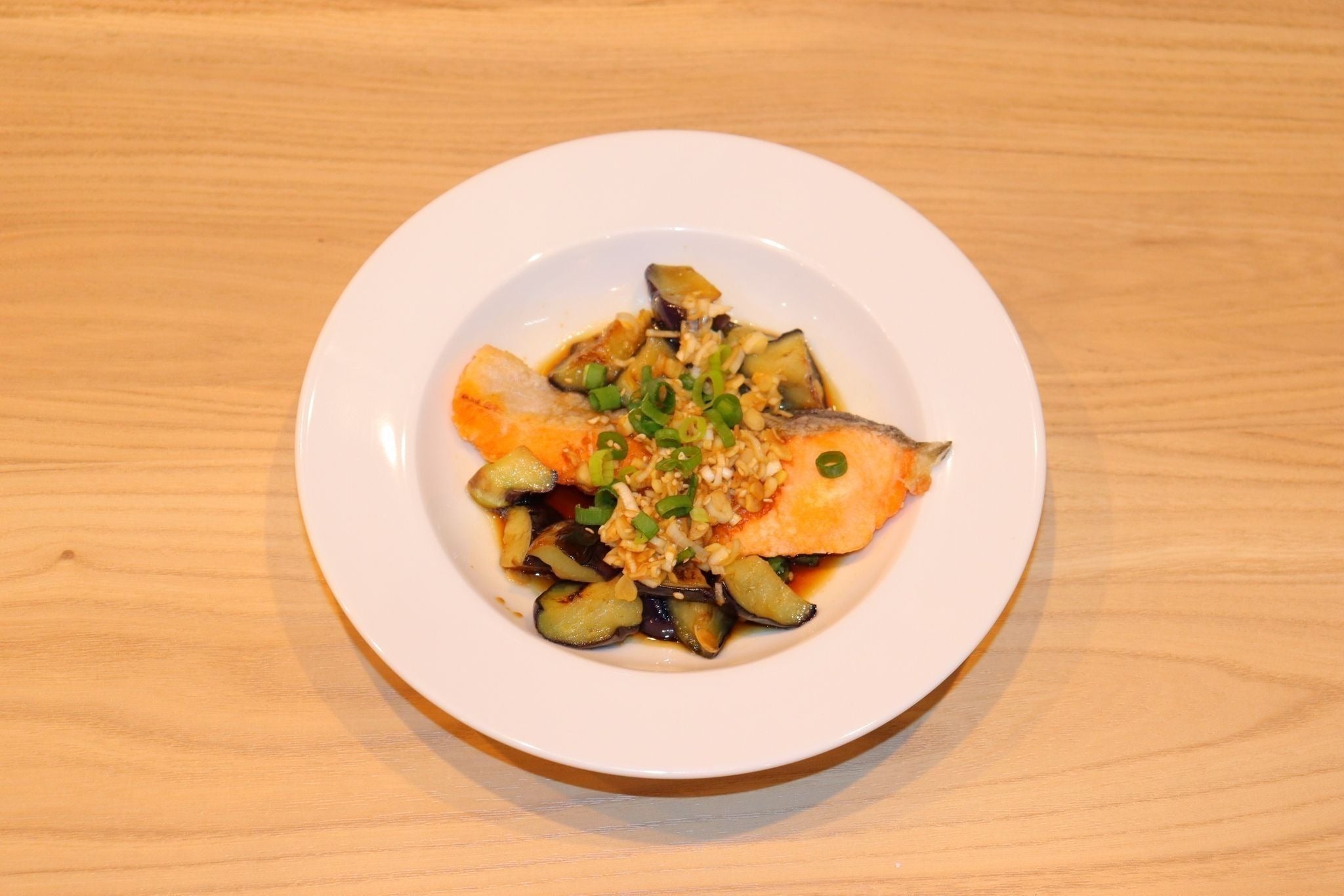 ・「鮭とナスの香味だれ」
