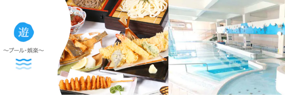 アミューズメントスペースには漫画や食事を楽しめるスペースのほか、1年中楽しめる南国リゾートホテルのような温浴プールエリア【屋内ゾーン】【屋外ゾーン】【じゃばじゃばキッズ】の3エリアをご用意。