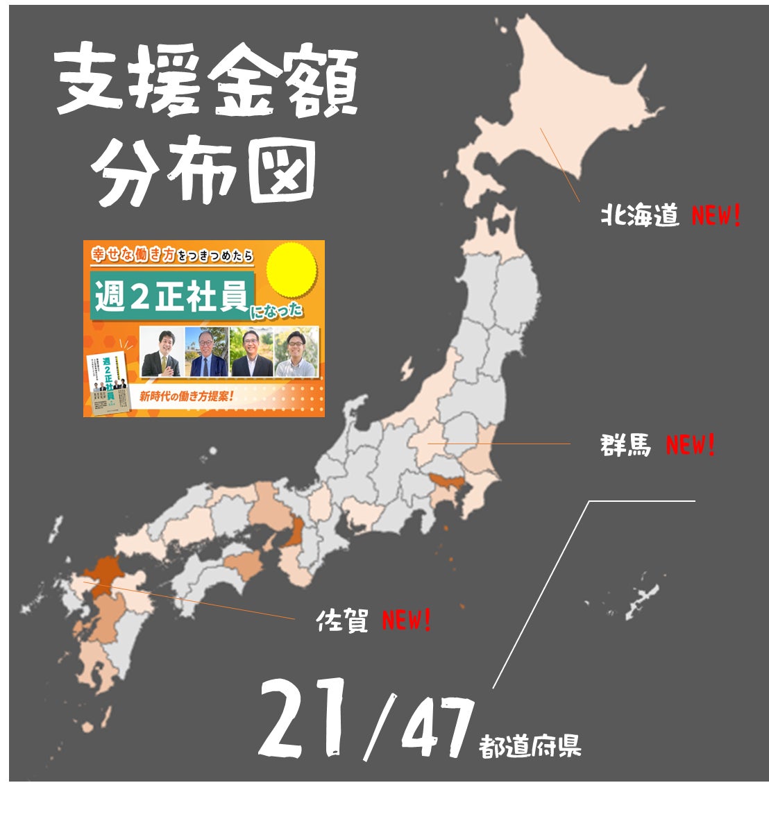 また、前回から新たなな都道府県として、北海道・群馬・佐賀の方に支援いただきました。