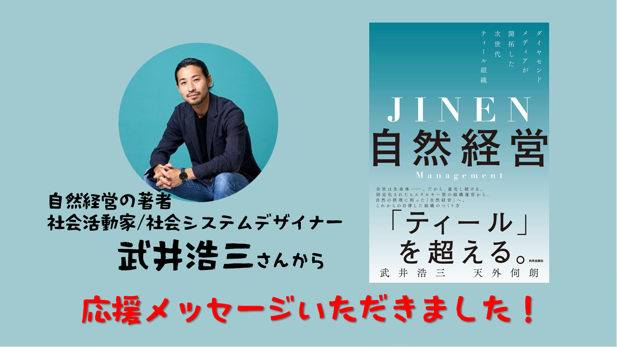 自然経営の著者 社会活動家/社会システムデザイナー 武井浩三さんから応援メッセージをいただきました。