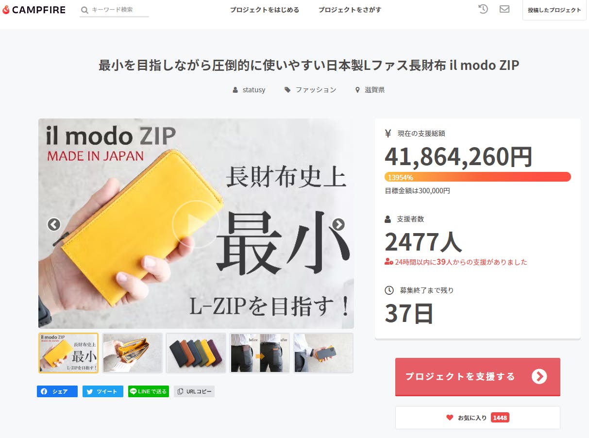 ステータシーのプロジェクト「il modo ZIP」お蔭様で支援金額が4000万円を達成することが出来ました!
