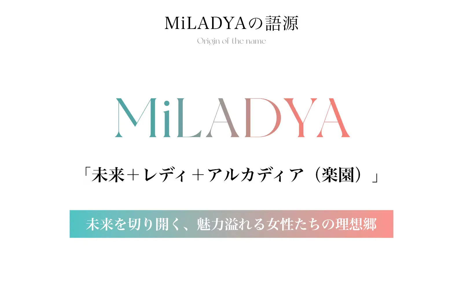 MiLADYAの語源は「未来+レディ+アルカディア(楽園)」