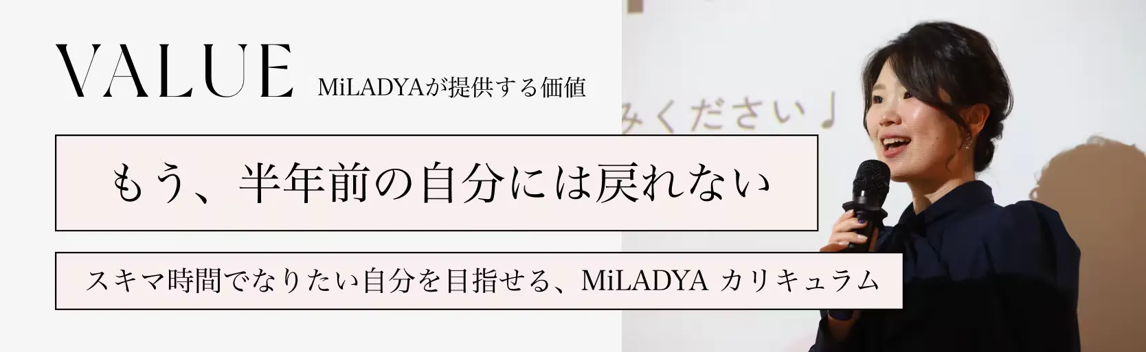 そんな女性でも「なりたい自分」を目指せるよう、スキマ時間で学べるカリキュラムをMiLADYAでは提供します。
