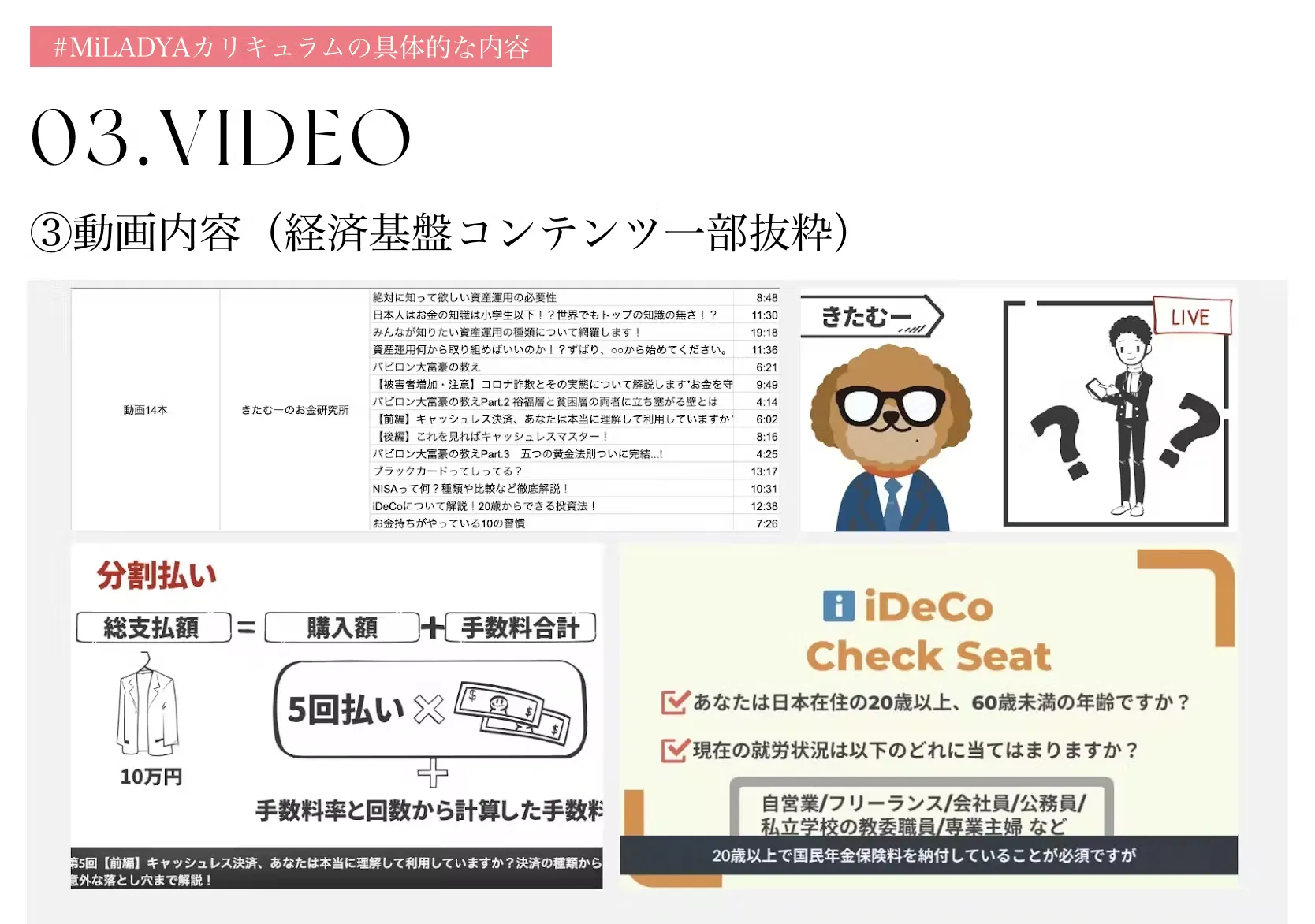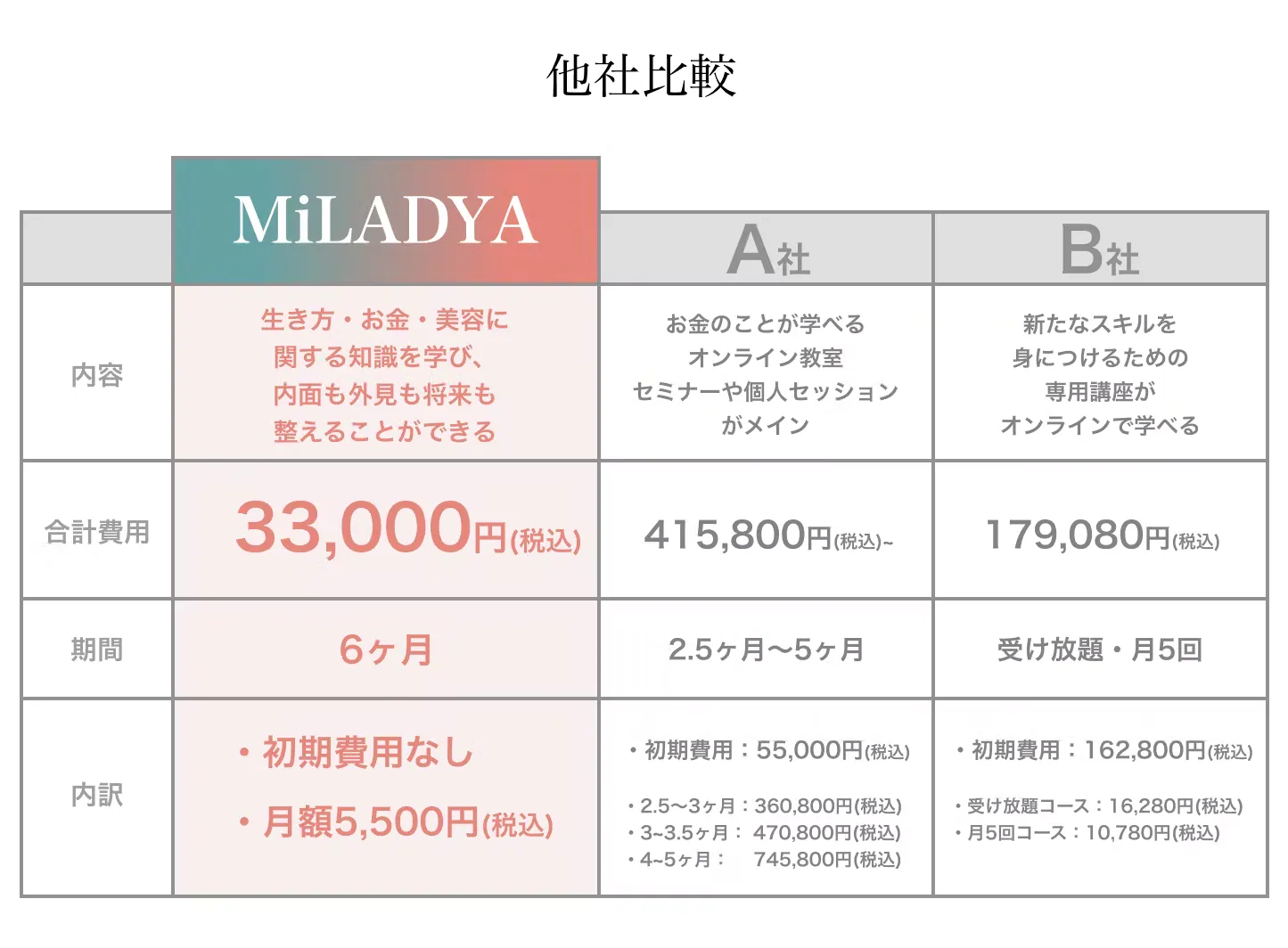MiLADYAの最大の魅力はこれらのコンテンツを「安価にスキマ時間で受けることができる点」です。