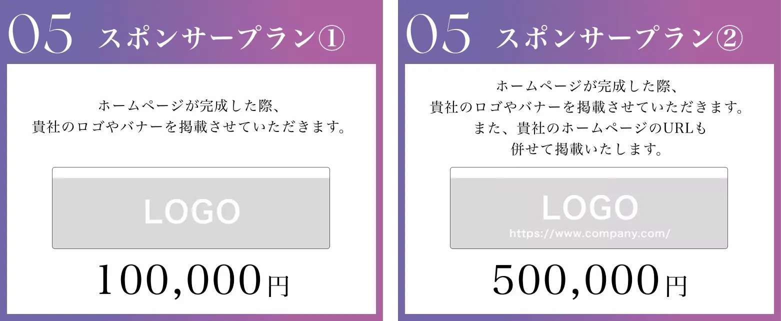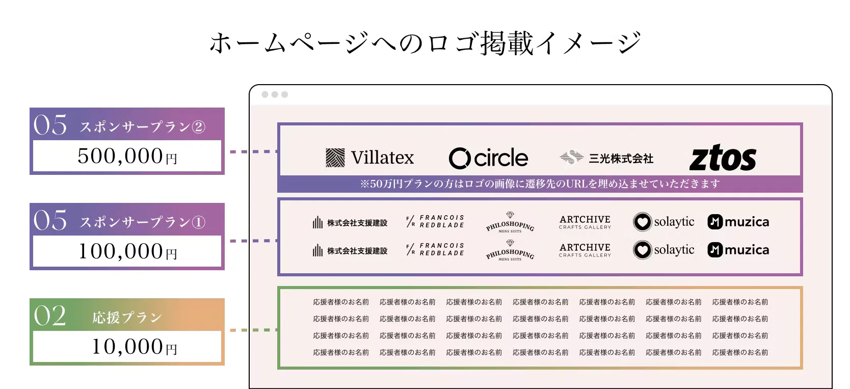 ※50万円のプランを支援いただいた企業様につきましてはロゴの画像に遷移先のURLを埋め込ませていただきます