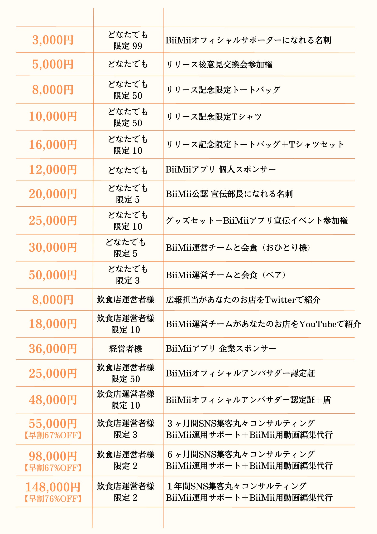 新しいSNSを広げて、ムーブメントを起こしたい!そんな想いから本プロジェクトを立ち上げましたので、支援者の皆様と一緒にBiiMiiムーブメントを起こせるようなリターンを用意いたしました!