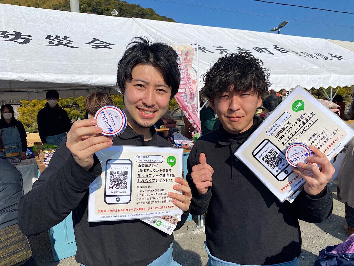 静岡県で有名な山梨罐詰様のイベントブースで、新商品や天神屋さんとのコラボ商品をPRしたり、公式のラインやInstagramを宣伝していました!