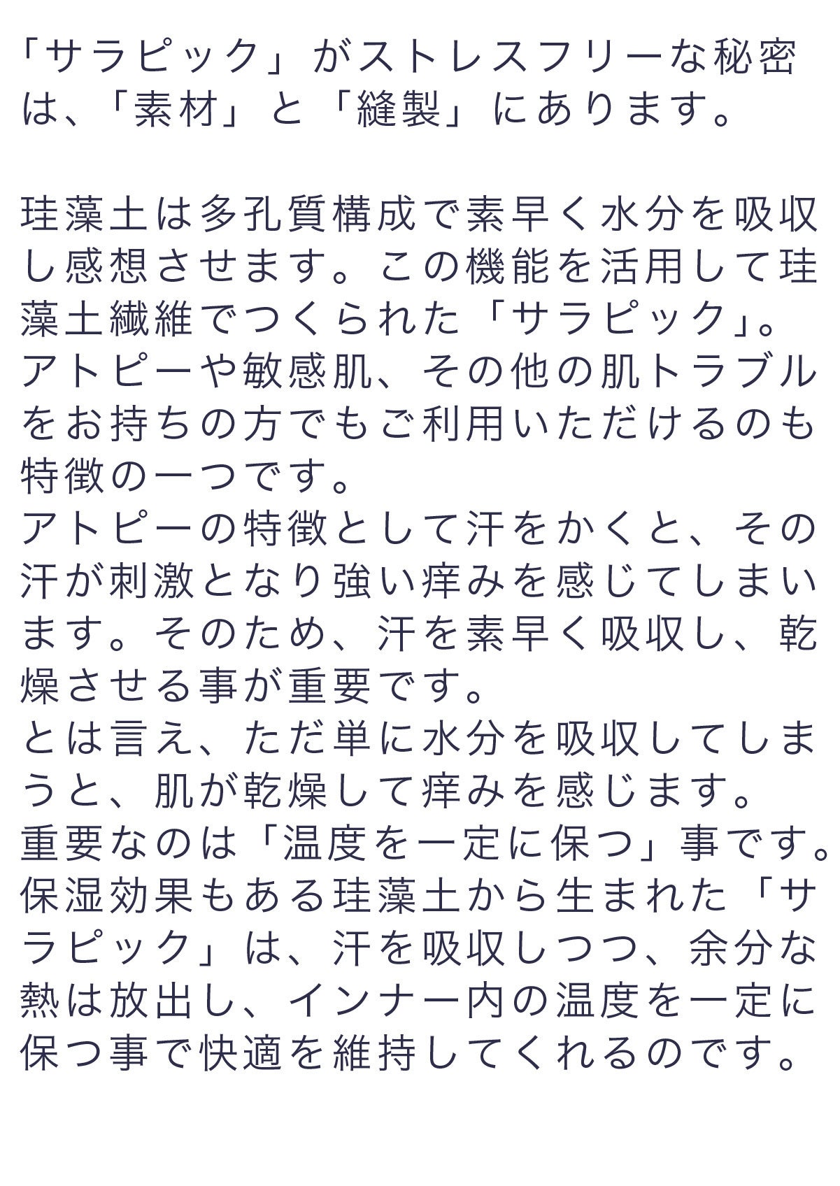 敏感肌に珪藻土が汗を吸収するストレスフリーのサラサラインナー誕生!暑い日にも、寒い日にも、ワークアウト時にも、オールシーズン使える珪藻土繊維でできた特別な「サラピック」で快適な毎日へ。