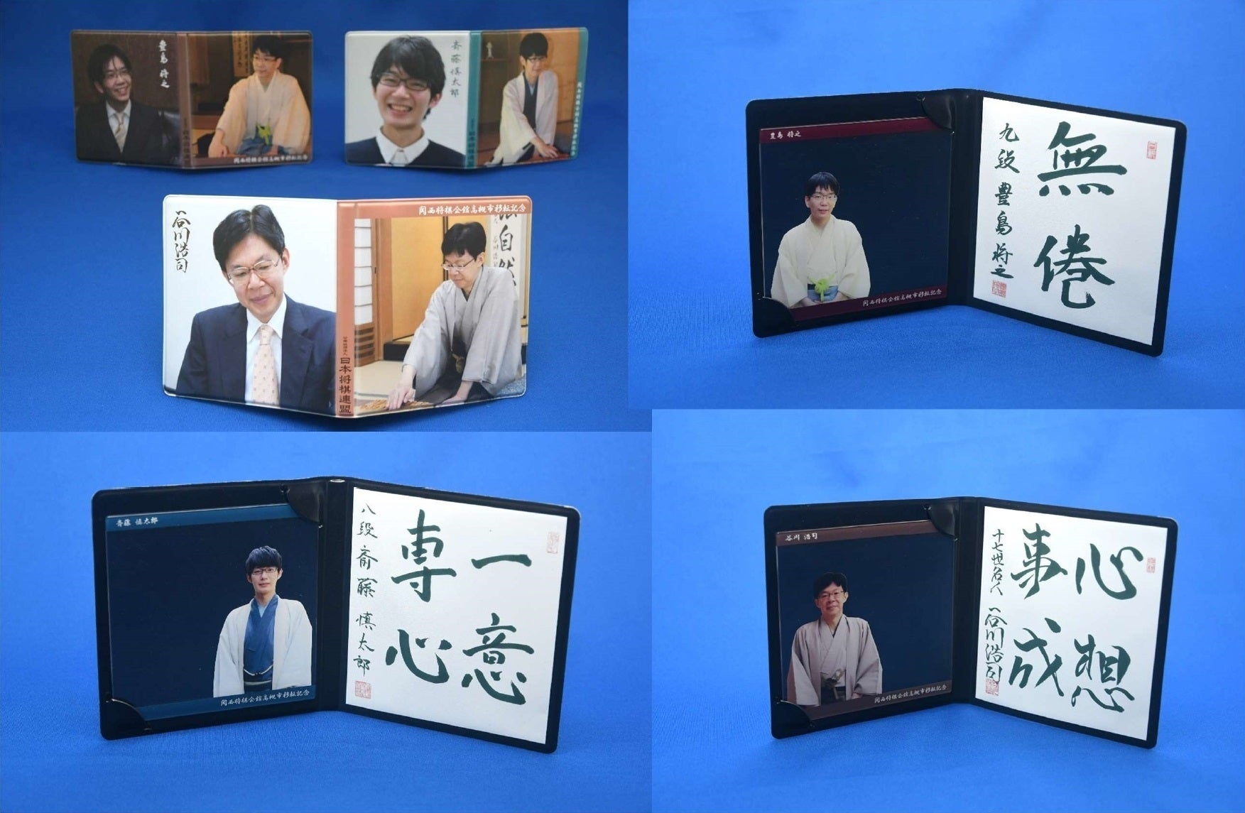棋士の写真入りアクリルカードと揮毫入り保管ケース