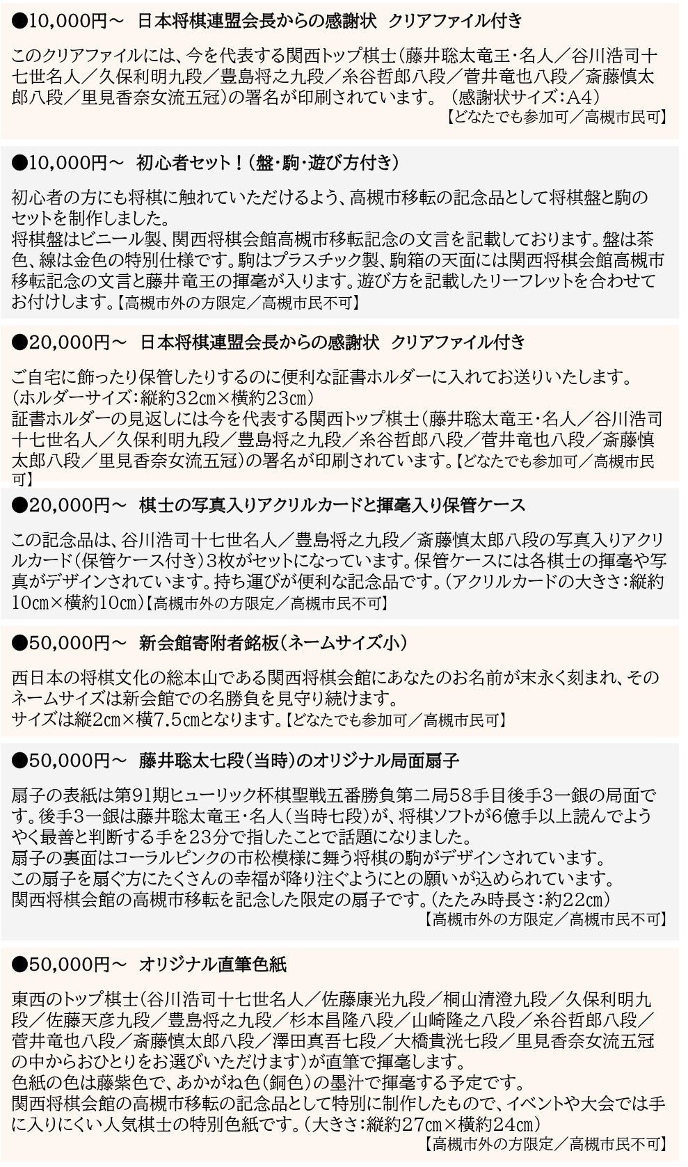 ぜひ、新関西将棋会館の建設資金となるご寄附をお願いいたします。また、今までご寄附頂いた皆様におかれましても、ふるさと納税型クラウドファンディングですので、改めてご寄附を検討されますよう重ねてお願いいたします。