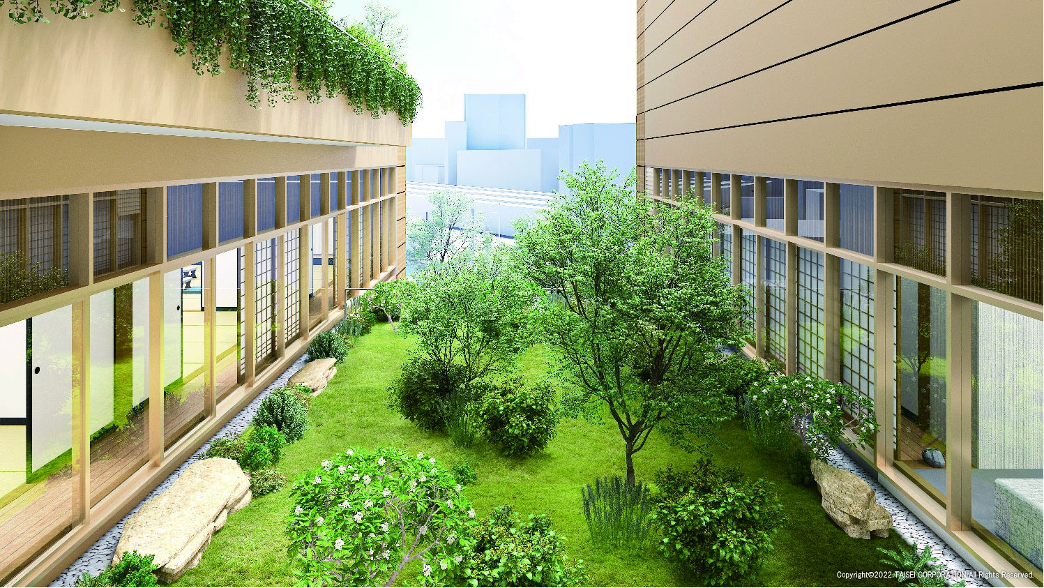谷川浩司十七世名人からは「大きな特徴は「内なる庭」。4階5階のすべての対局室から中庭の緑を楽しめることになります」とまず、説明がありました。
