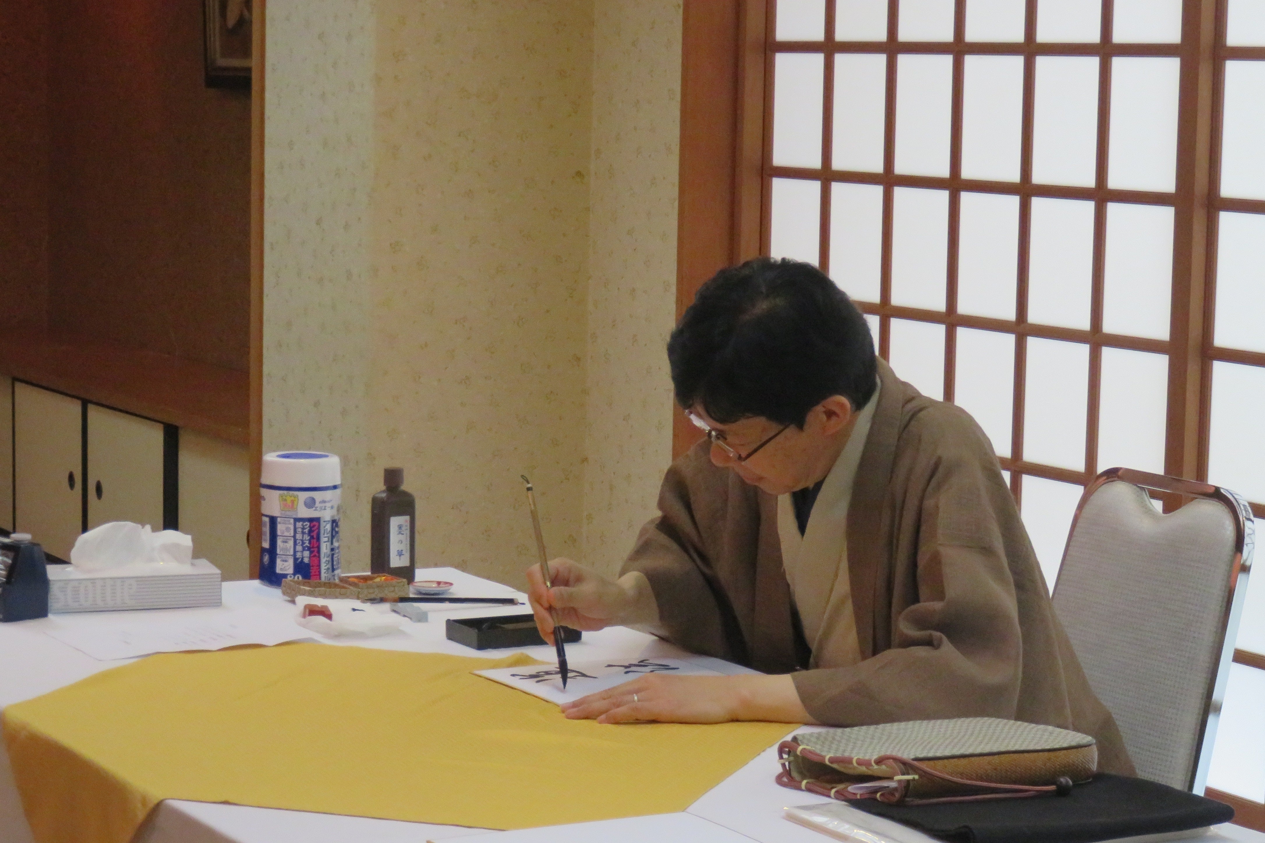 写真は6月に摂津峡 花の里温泉 山水館で開催された「谷川浩司十七世名人のタイトル戦疑似体験イベント」での一幕です。