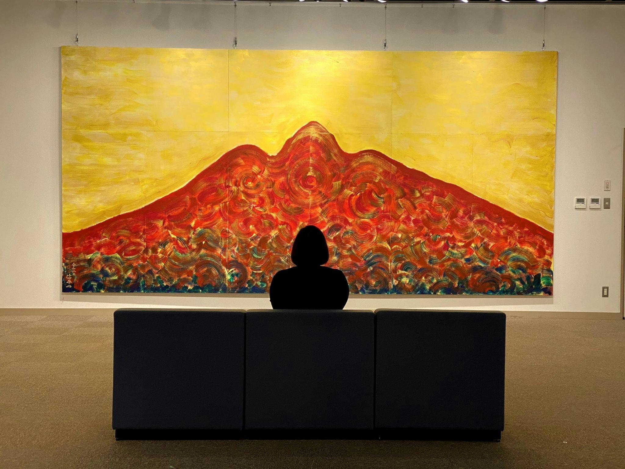 主人が描いた大きな大きな岩木山の前で物思いにふける私です(^^)