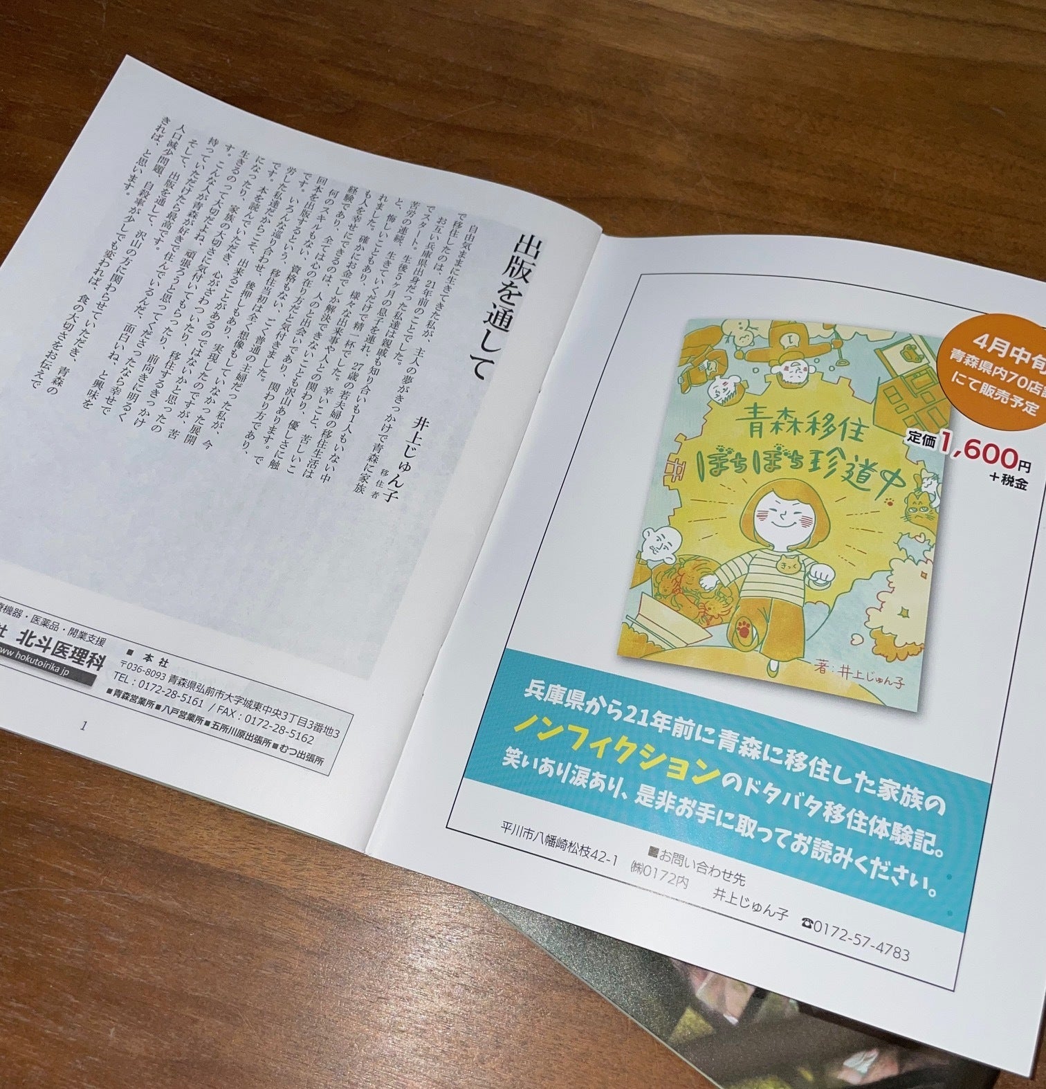 みなさん、こんにちは!先ほど、お客さまのところに納品に伺ったら「月刊弘前、見たよ~いい文章!本も本当に楽しみ、みんなに宣伝するわね~」と。早速、張り切って2冊、買っちゃいました♬しかも、表紙開いて一番前ーっ!ビックリです。先々週、寄稿の依頼をいただき、ギリギリで原稿をあげました。北方新社さん、本当にありがとうございます!表紙デザインは、更に可愛くなってお店に並びます♬完成まで今しばらくお待ちください。☆井上じゅん子☆