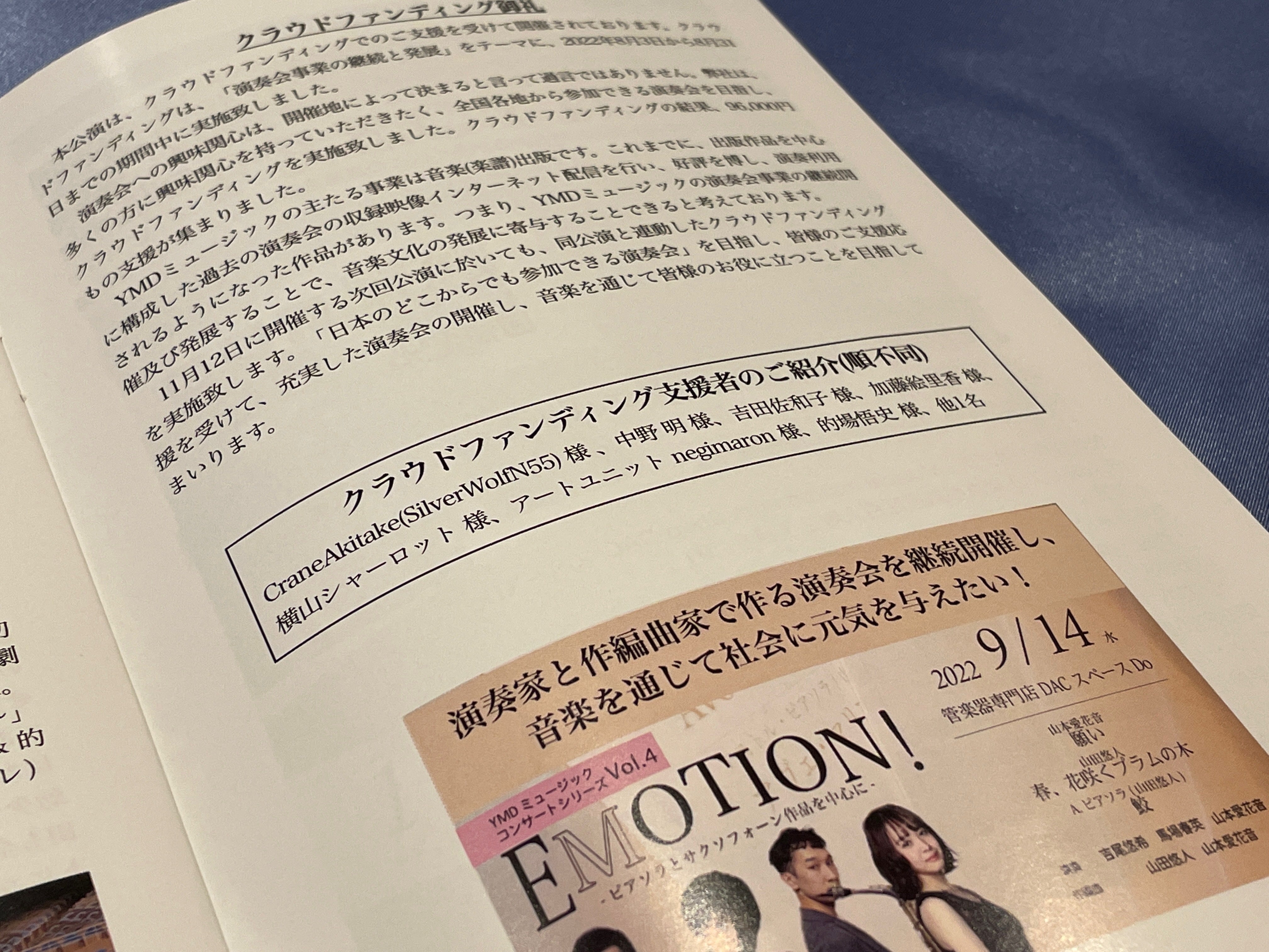 演奏会を応援したいけど、会場に行くことができないというかたは、公演パンフレット、お名前掲載のみで構成された「応援コース」でご支援応援いただけますと幸いです。