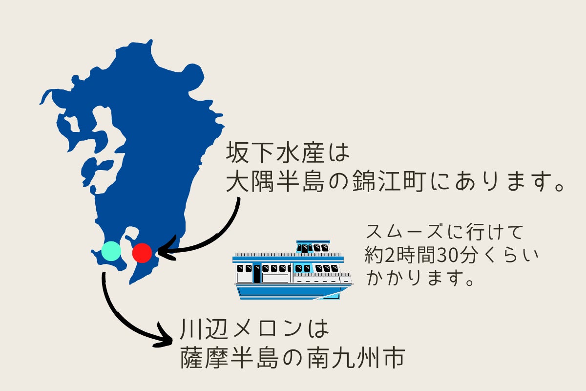 メロンがひと段落した秋に、お礼を兼ねて坂下水産様の運営している「ふる里館」へ行きました。私たちが住んでいる南九州市は鹿児島県の薩摩半島ですが、坂下水産のある場所は大隅半島。