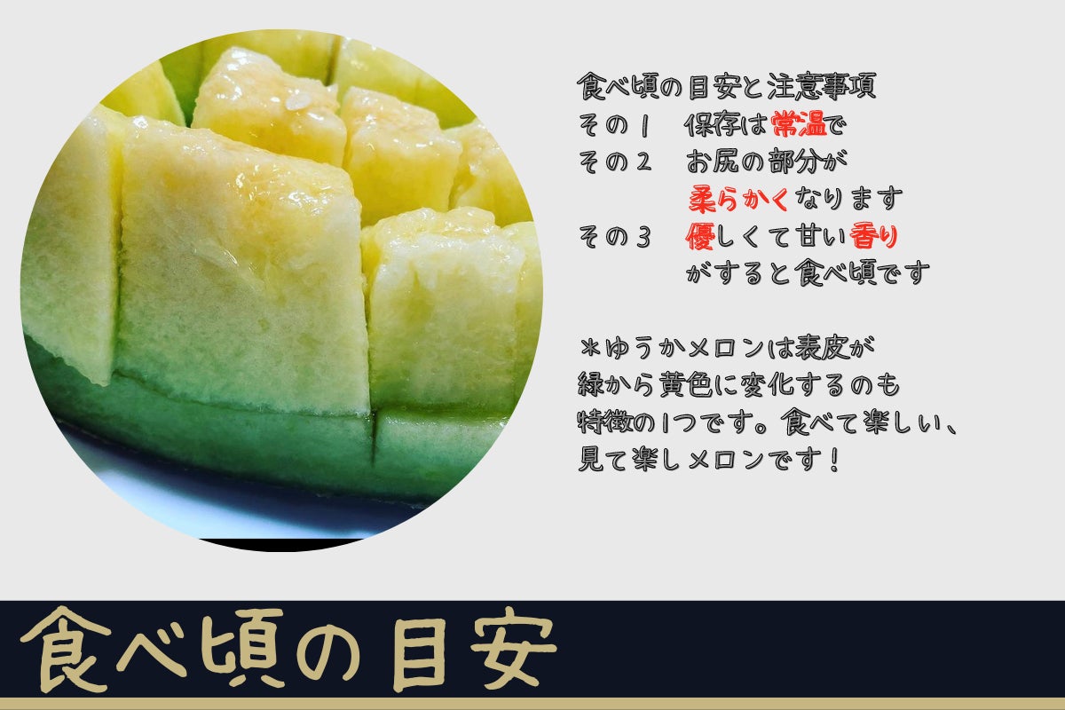 ユウカメロンの収穫タイミングは、表皮が黄色に変化し始め