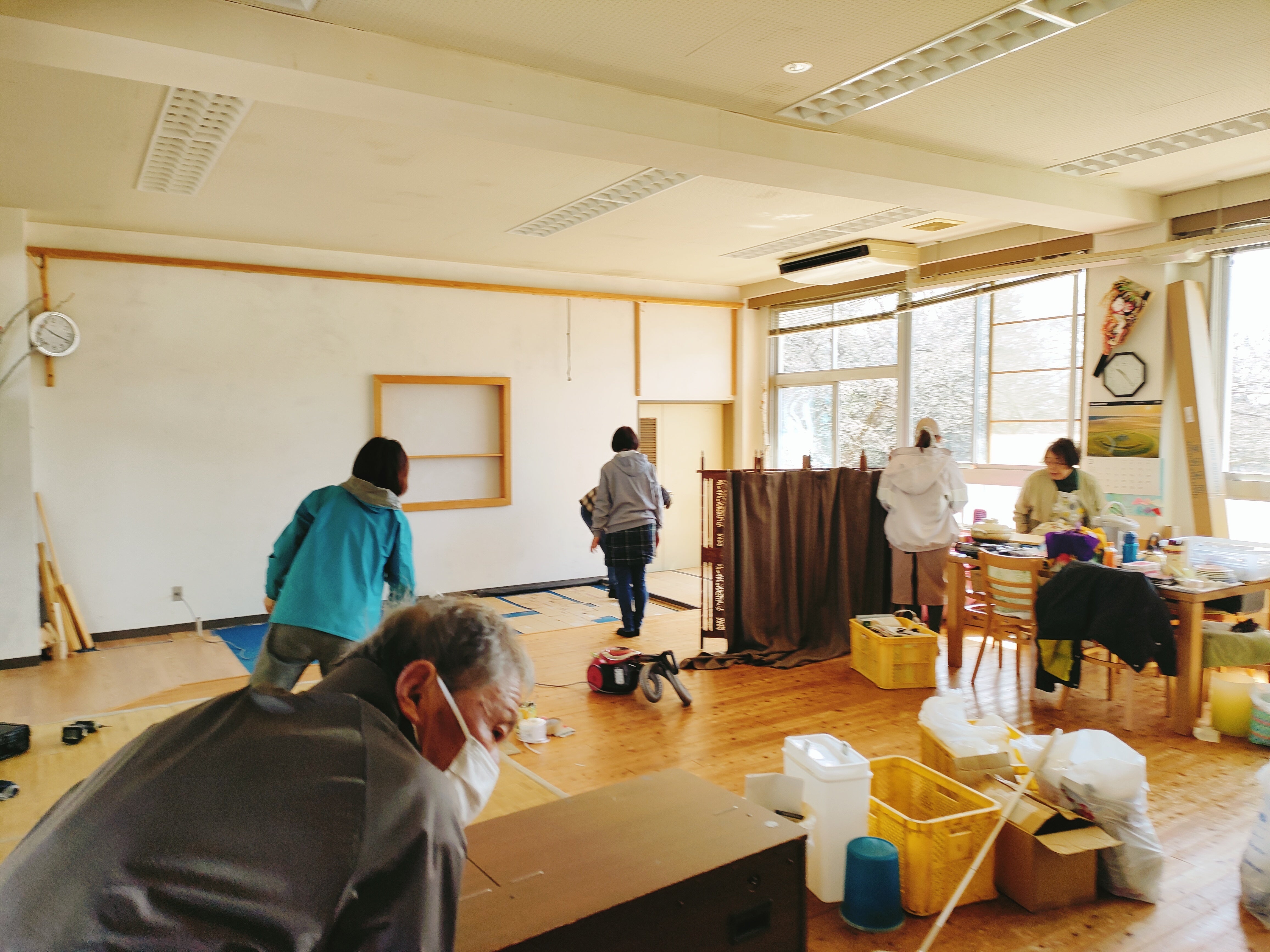 午後には子ども達もお手伝いに来てくれました。雑巾がけをして、新拠点をピカピカにしてくれました!